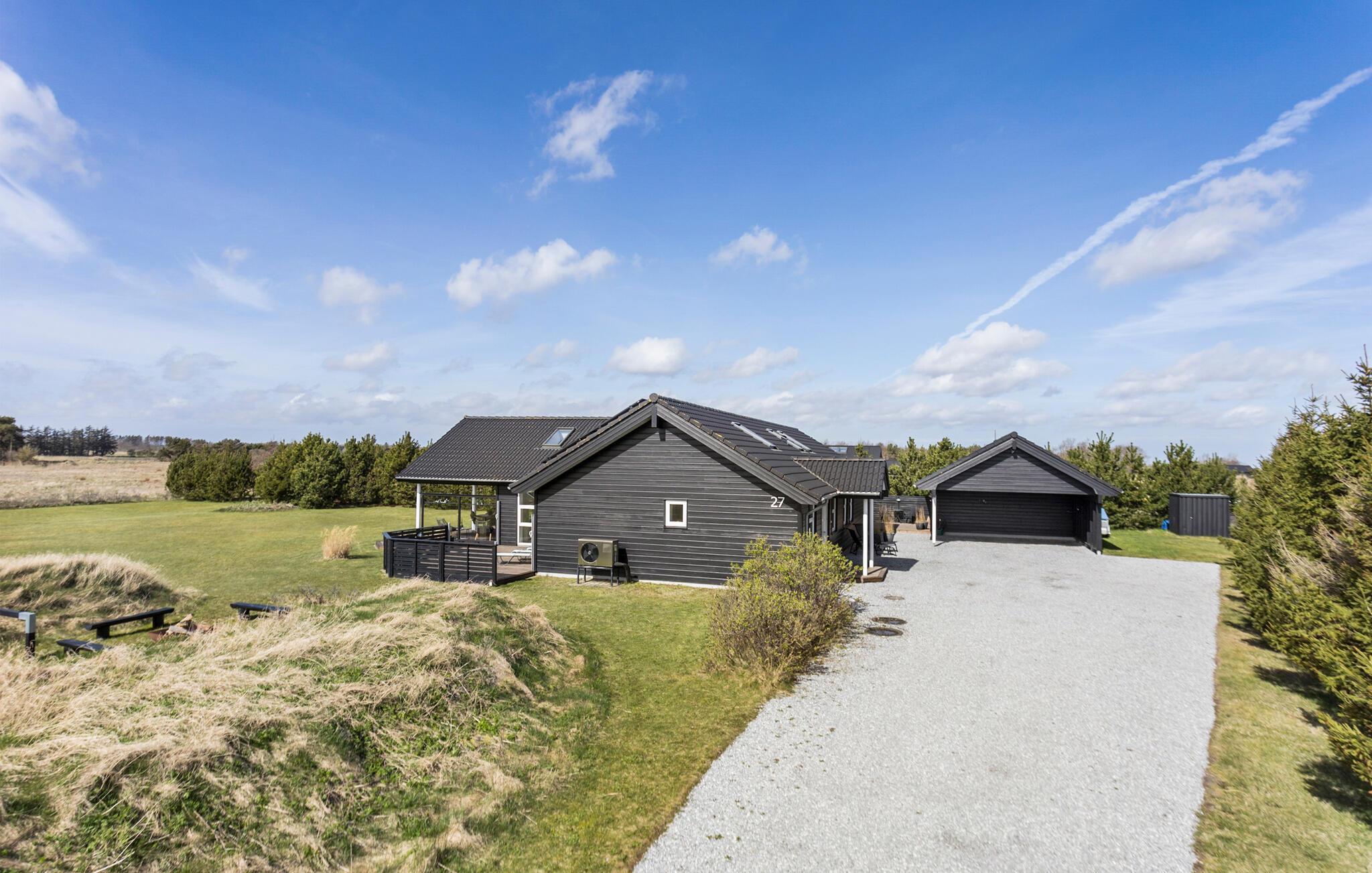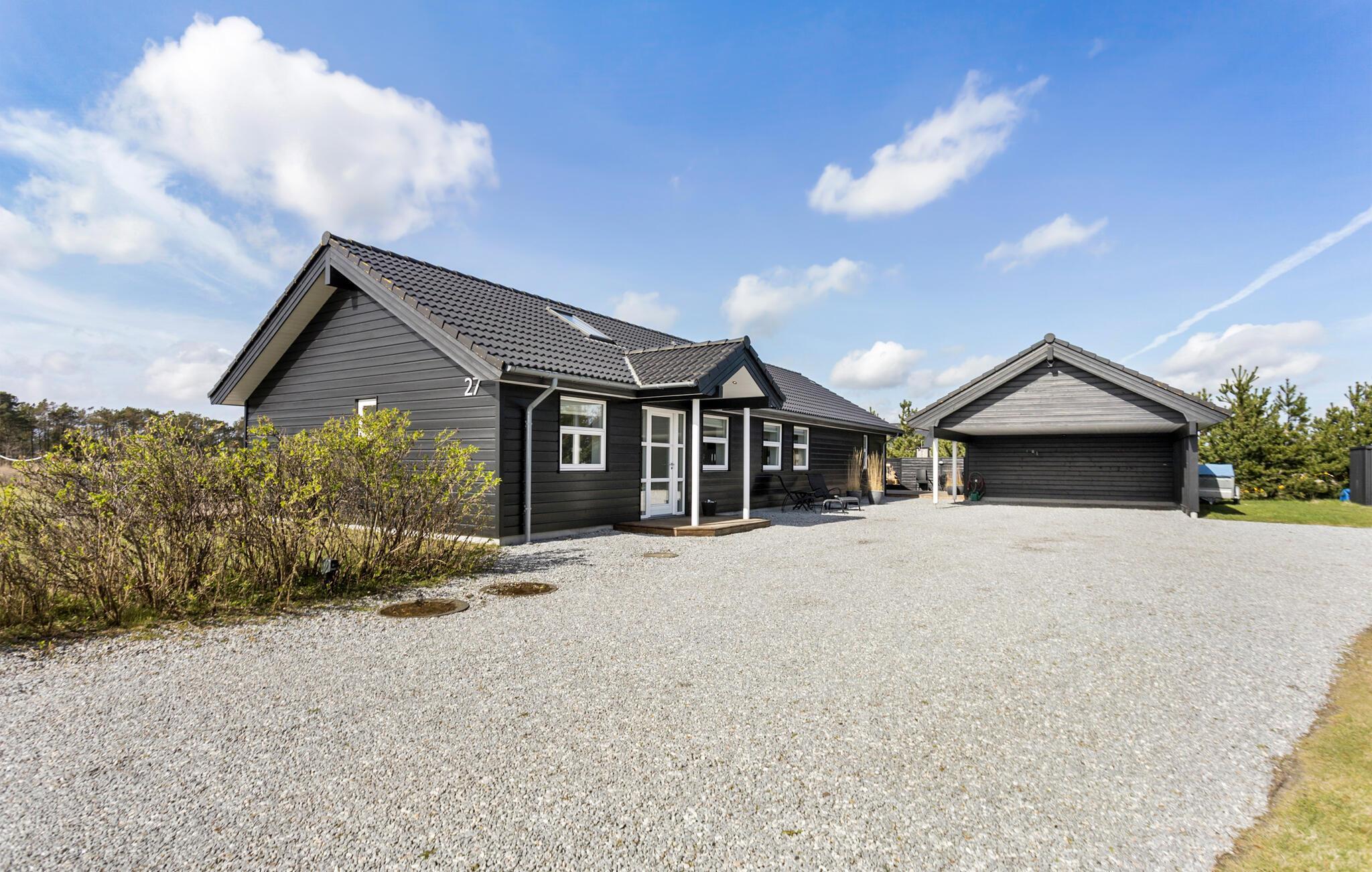 Moderne feriehus ved Bratten Strand med sauna, vildmarksbad og stor have til familiehygge.