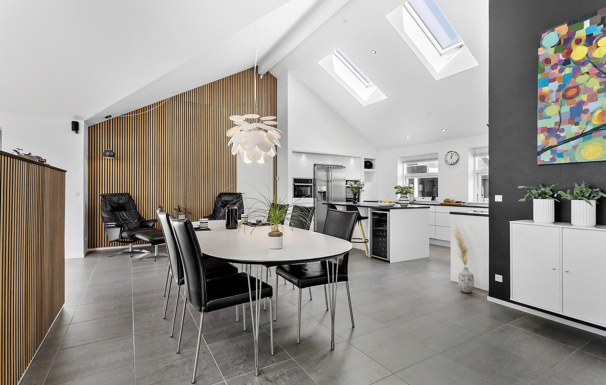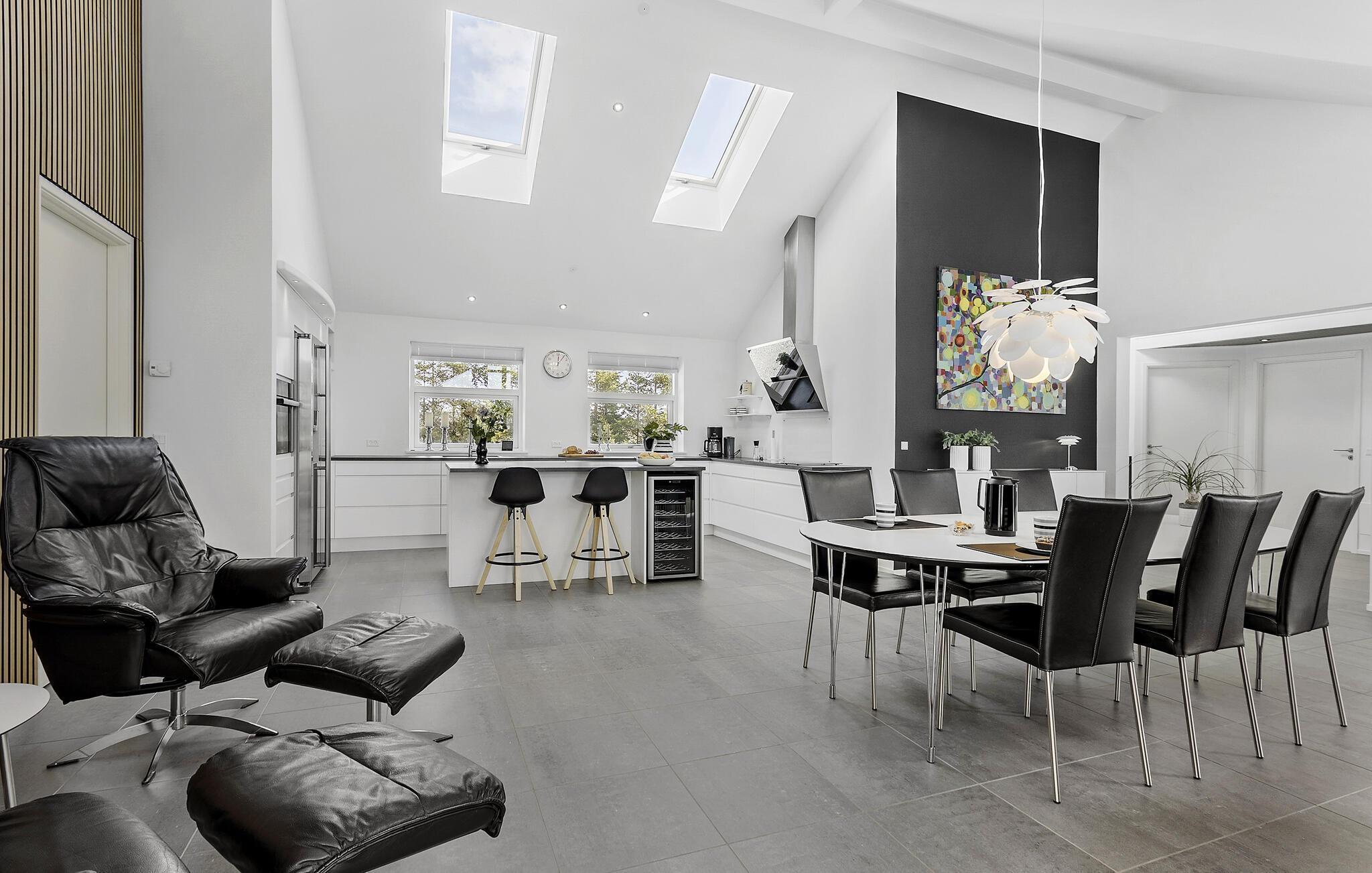 Årets familieferie venter jer i dette flotte og moderne hus med sauna og vildmarksbad tæt på Kattegat.