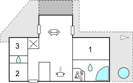 Badeværelse (nr. 2) - WC. Varmt og koldt vand. Bruser