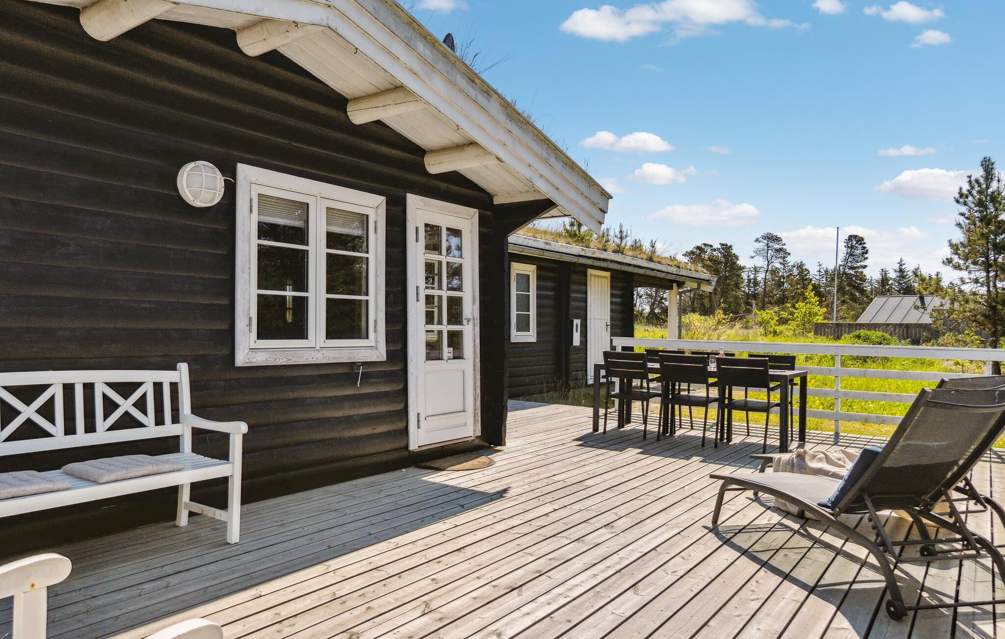 Hyggeligt feriehus i Jerup med direkte adgang til sandstrand og charmerende terrasseområder.