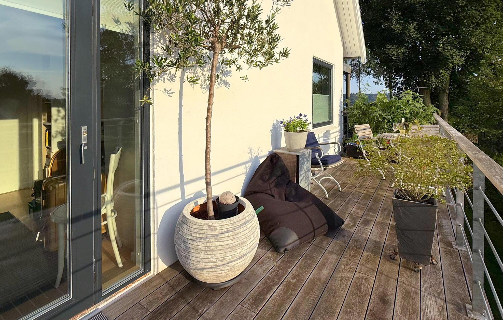 Træd ud på terrassen ved de første solstråler og nyd ikke kun udsigten over vandet, men også naturens ro. Spis morgenmad her i varmt vejr eller find et sted i solen at læse. Om aftenen inviterer terrassen jer til at se solnedgangen.