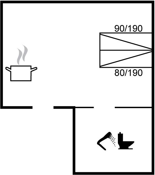 Der er i alt 1 soveværelse. Sovepladserne fordeler sig på: 2 sovepladser i dobbeltseng.