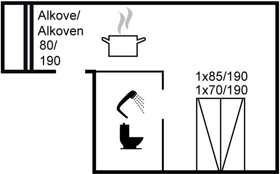Sovepladserne fordeler sig på:2 sovepladser i dobbeltseng. 2 sovepladser i alkove.