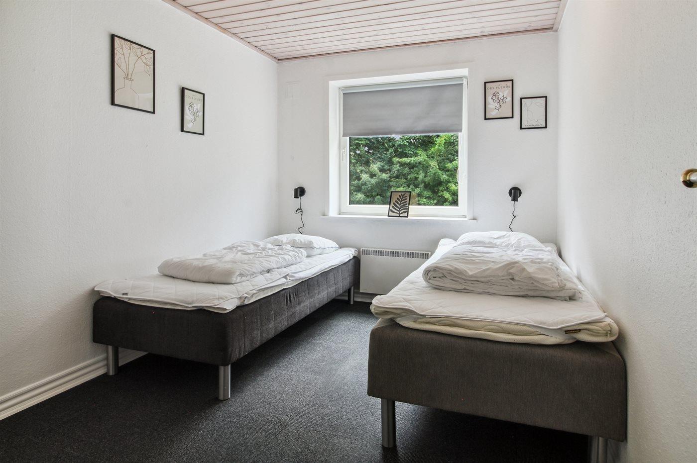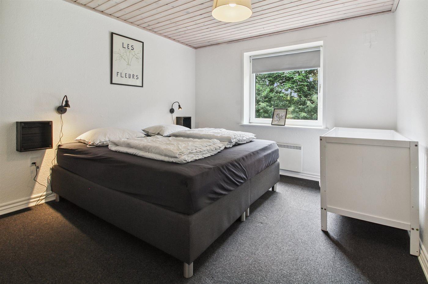 Der er i alt 4 soveværelser. Sovepladserne fordeler sig på: 6 sovepladser i dobbeltsenge. 2 sovepladser i enkeltsenge. Derudover er der 1 stk. barneseng.