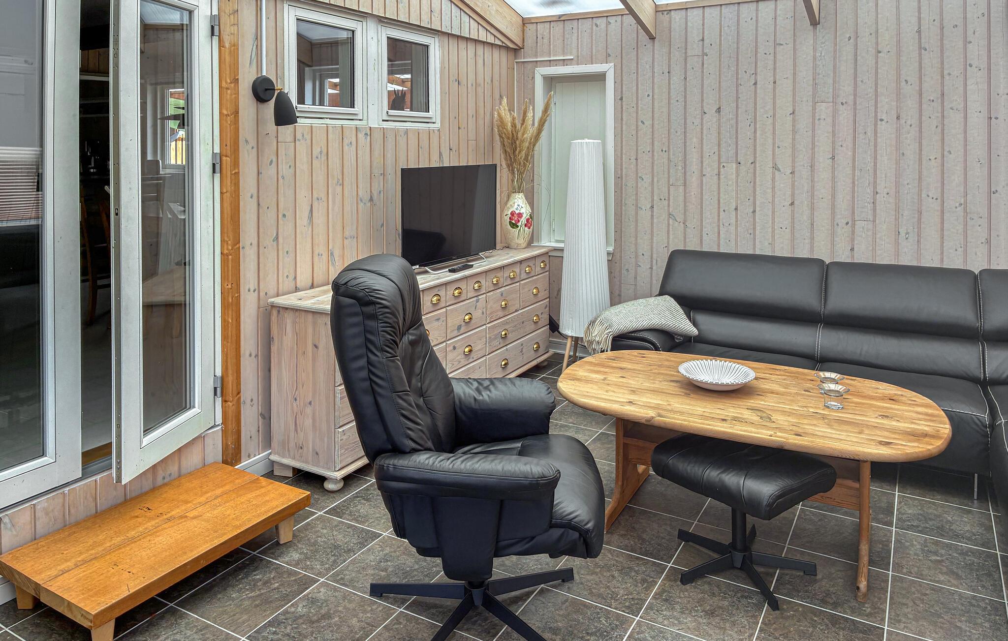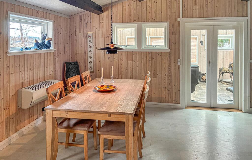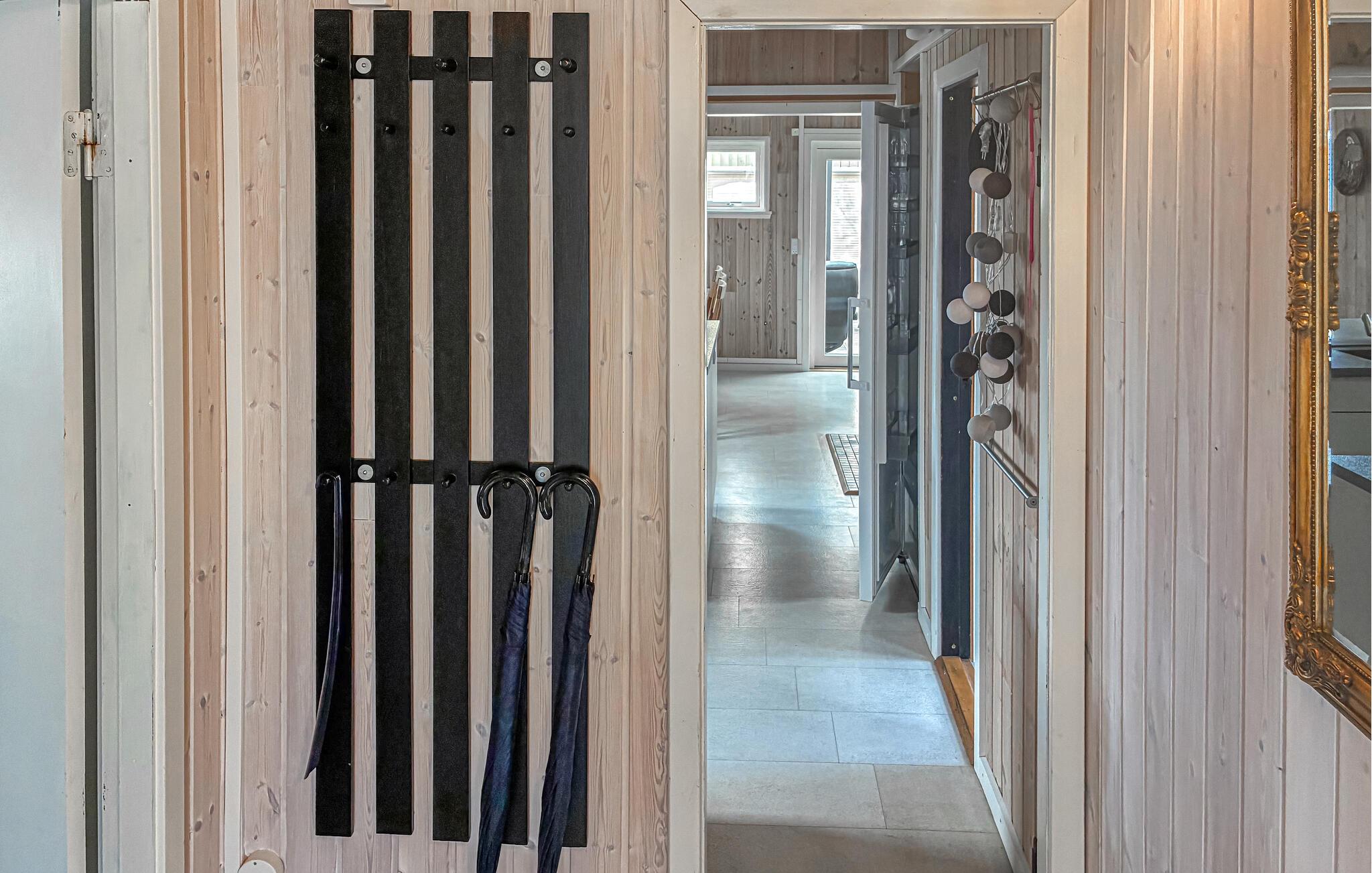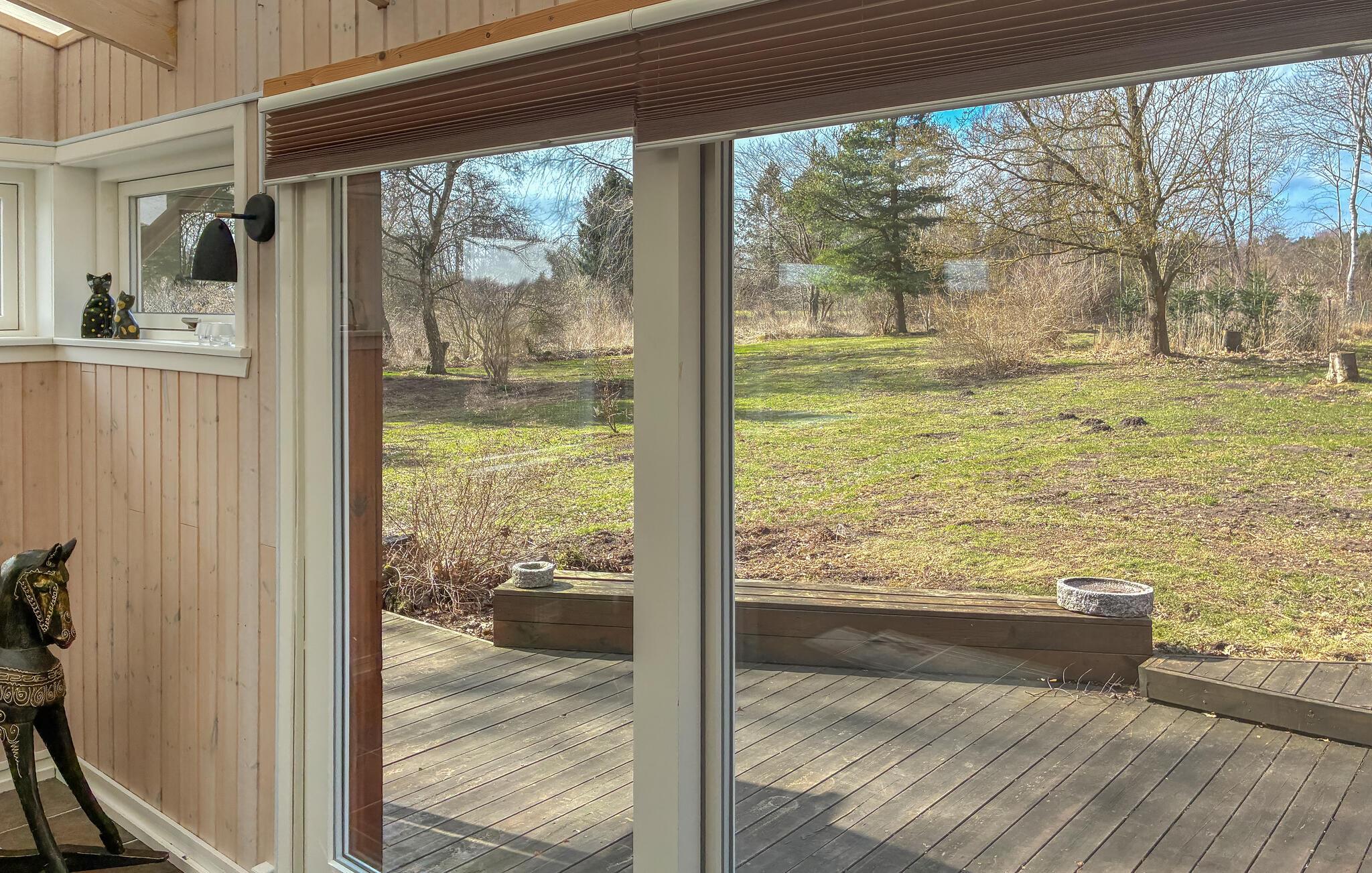Dette hus byder jer velkommen med en varm og behagelig atmosfære, hvor naturlige materialer og store vinduer skaber masser af lys og ro. Brændeovnen og udsigten til det grønne danner rammerne for et sted, hvor I straks kan slappe af og lægge hverdagen bag jer. Stream en film sammen, lyt til en podcast i fred og ro, eller tilbered lækre måltider i køkkenet.