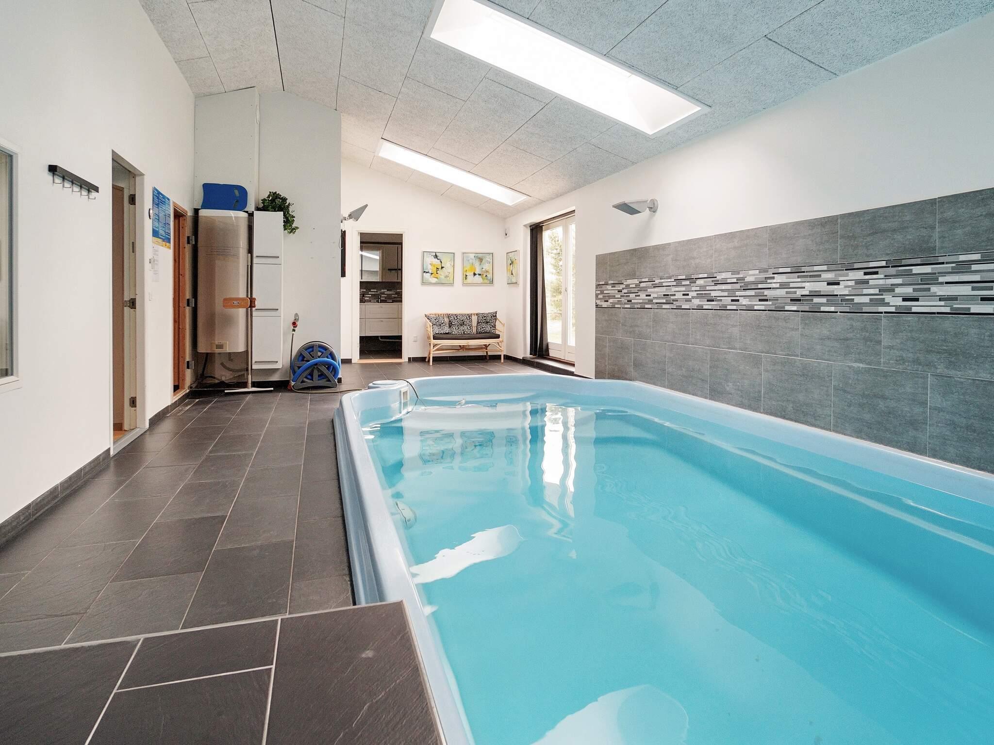 Oplev det perfekte tilflugtssted i det naturskønne område Bredfjed, kun en kort gåtur fra den dejlige strand. Dette feriehus byder på et fantastisk poolområde, hvor I kan lege og træne i den indbydende swimmingpool, som varierer i dybden fra 1 til 1,3 meter, og der er også en svømmetræner. Efter en aktiv dag kan du slappe af i saunaen og nyde den skønne varme.
