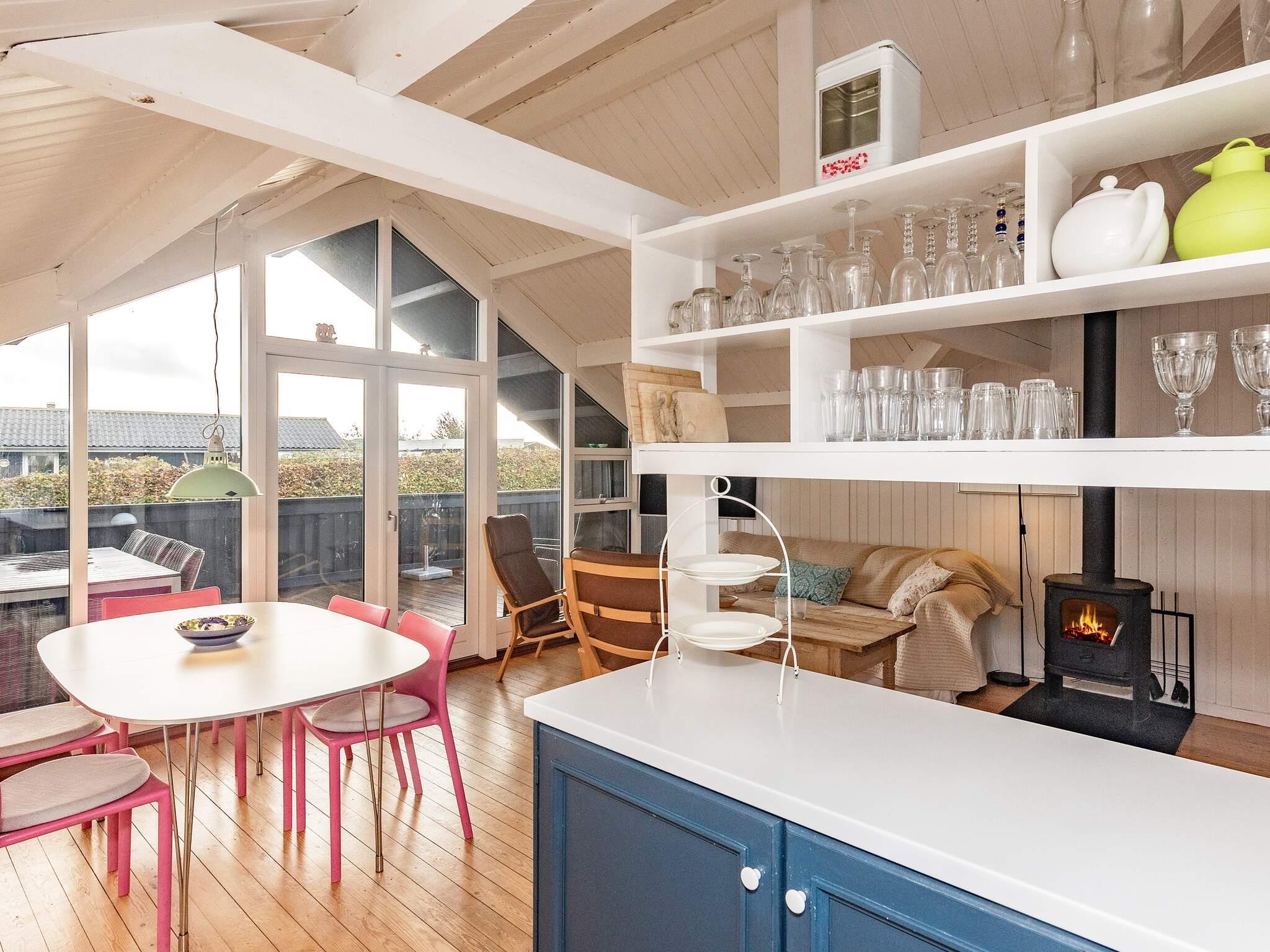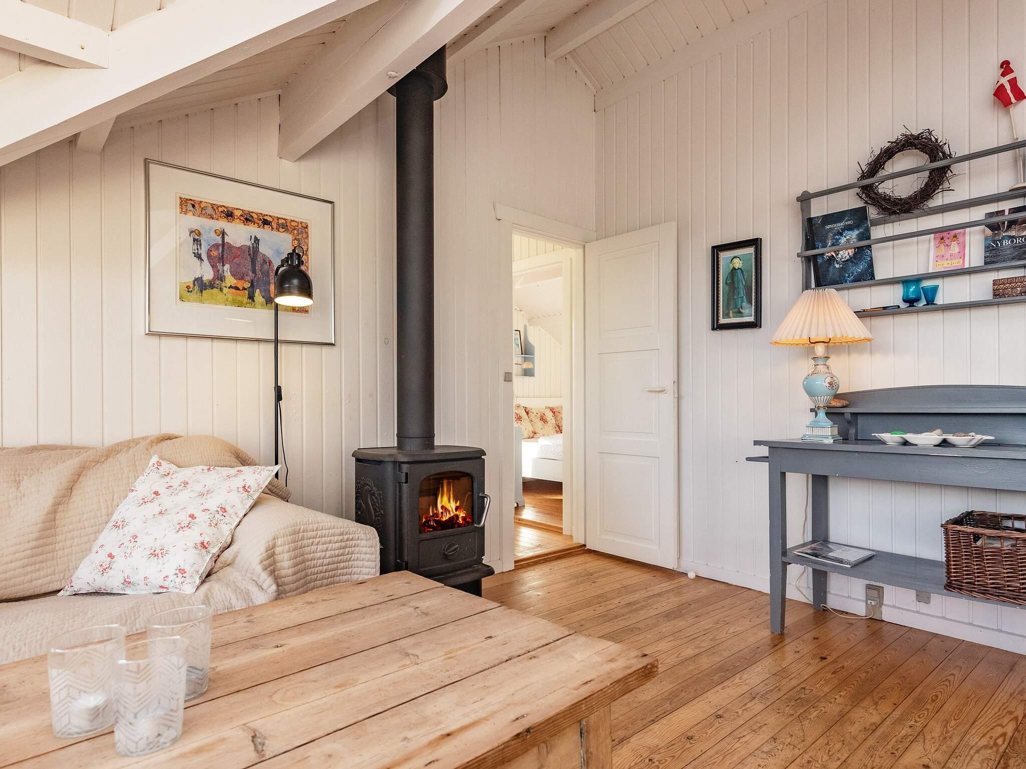 1 Opholdsstue: Brændeovn, radio, tv, høj stol