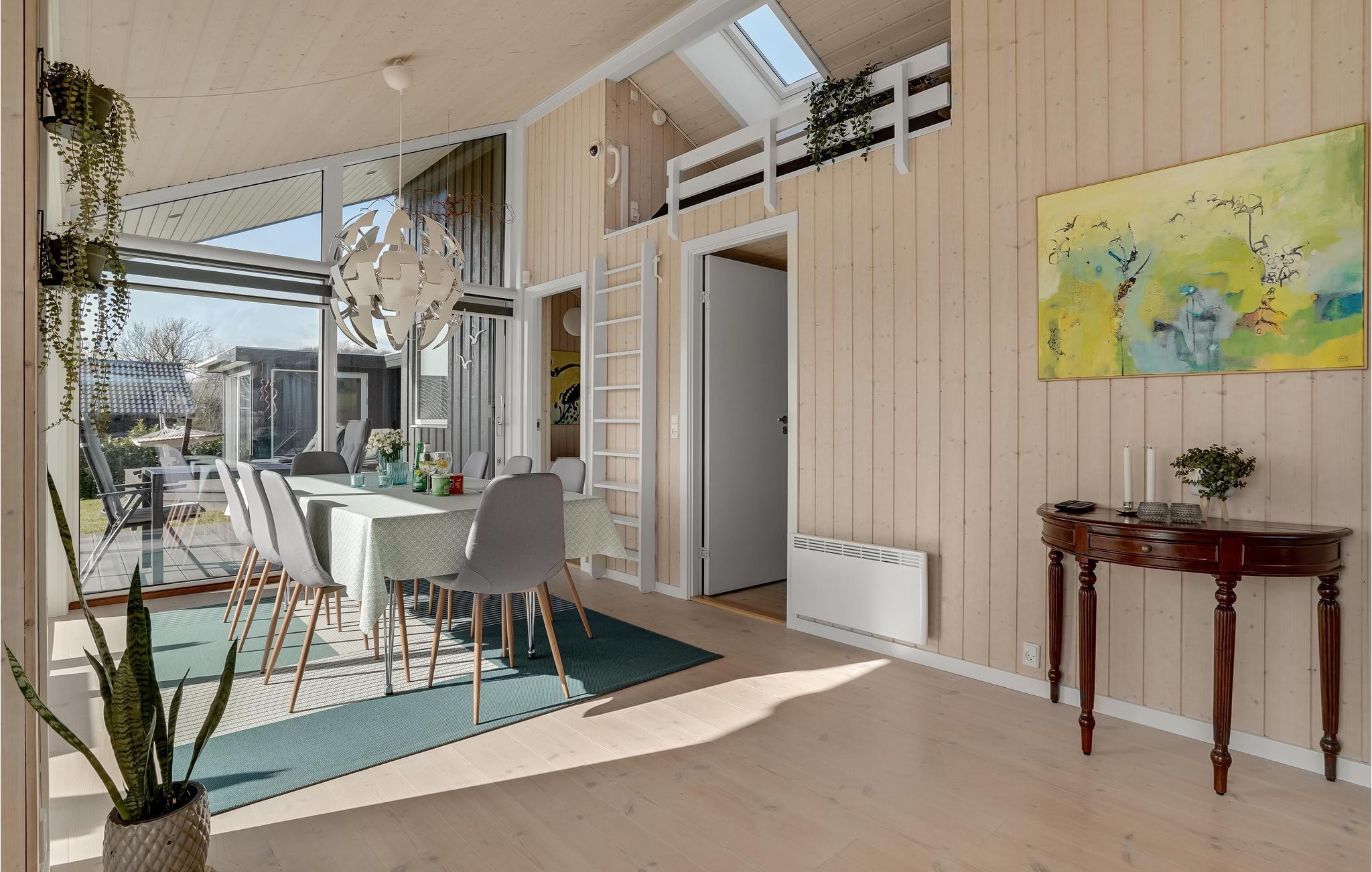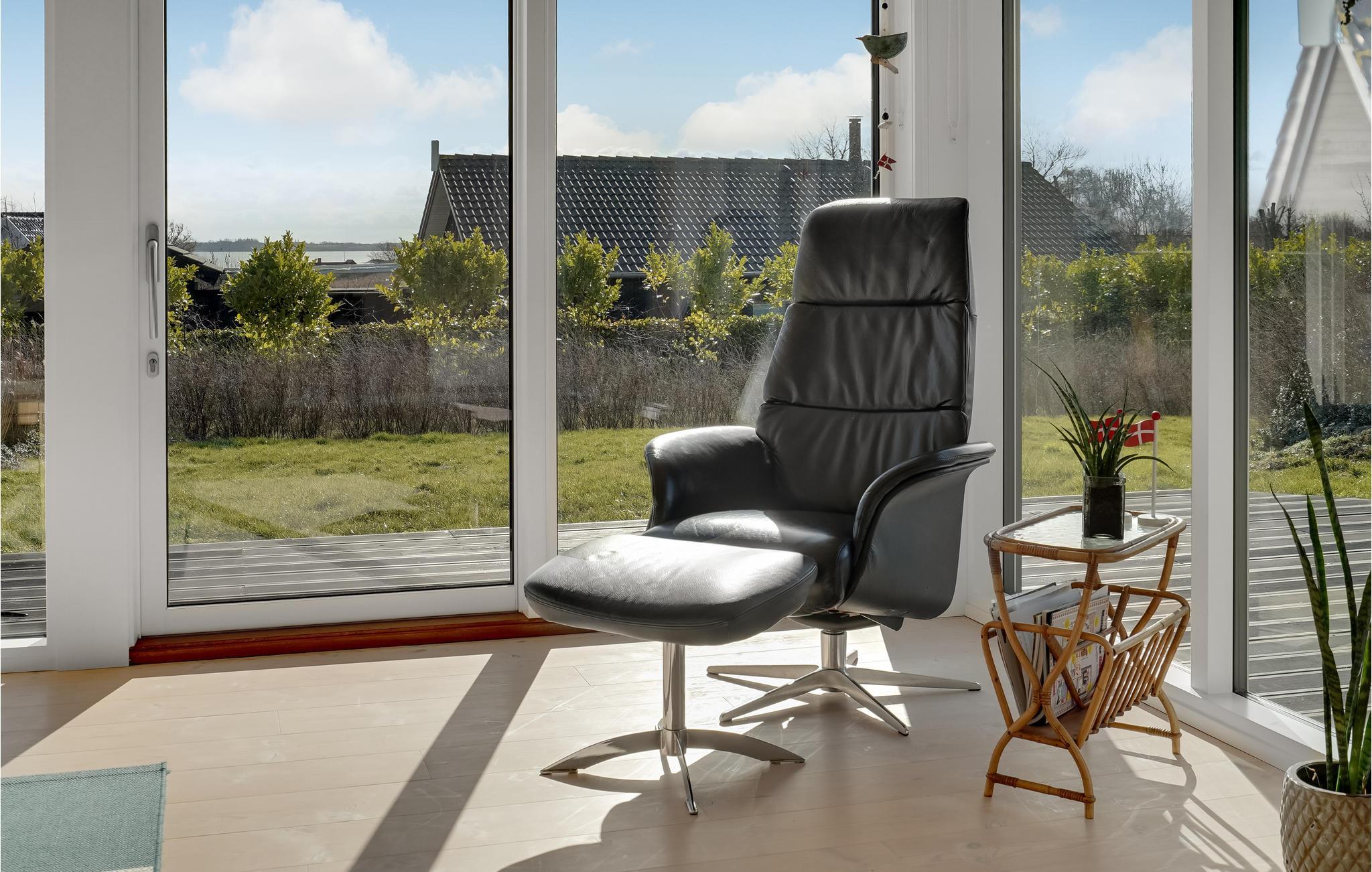 I de lyse lokaler til dette hus kan I hygge jer med hele familien på alle tider af året. Den hyggelige bolig med smukt lysindfald gennem de store glasfronter sørger for en behagelig atmosfære. Lav ferieretterne sammen, mens I nyder en vidunderlig udsigt til omgivelserne og dæk derefter op i stuen, hvor I også har en dejlig udsigt. Senere kan I finde jer godt til rette i sofaområdet og lade blikket vandre over de grønne omgivelser.