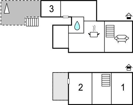 Badeværelse (nr. 1) - WC. Varmt og koldt vand. Bruser