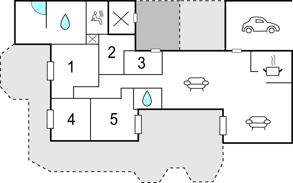 Badeværelse 16m2 (nr. 1) - WC. Varmt og koldt vand. Bruser