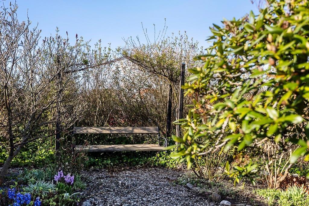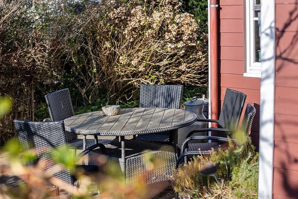Sommerhusets romantiske have er en sand oase. Her kan du slappe af i den velplejede have og lade dig betage af den betagende udsigt over vandet. Det er det perfekte sted at nyde morgenkaffen, læse en god bog eller blot lade tankerne flyve.