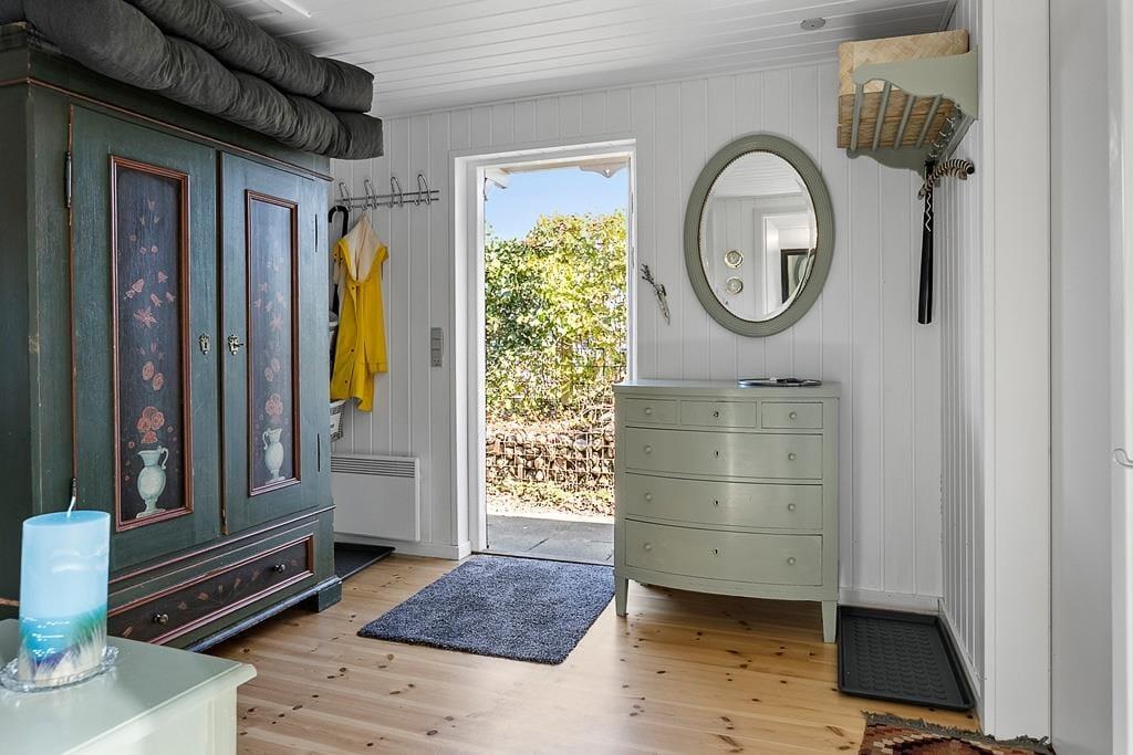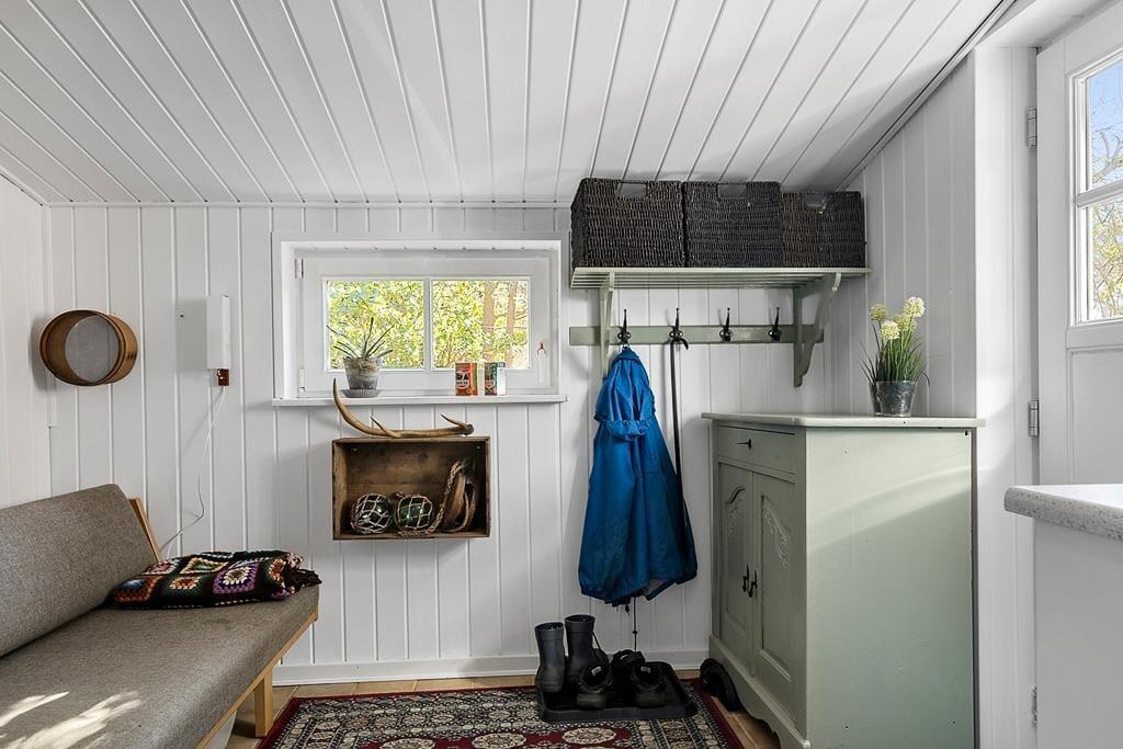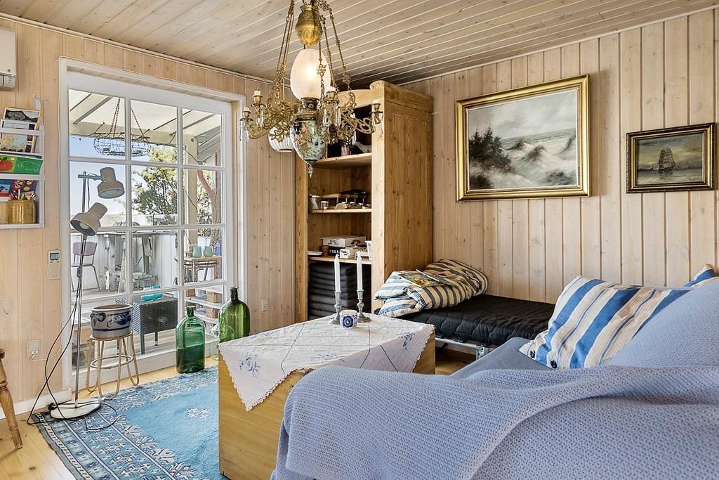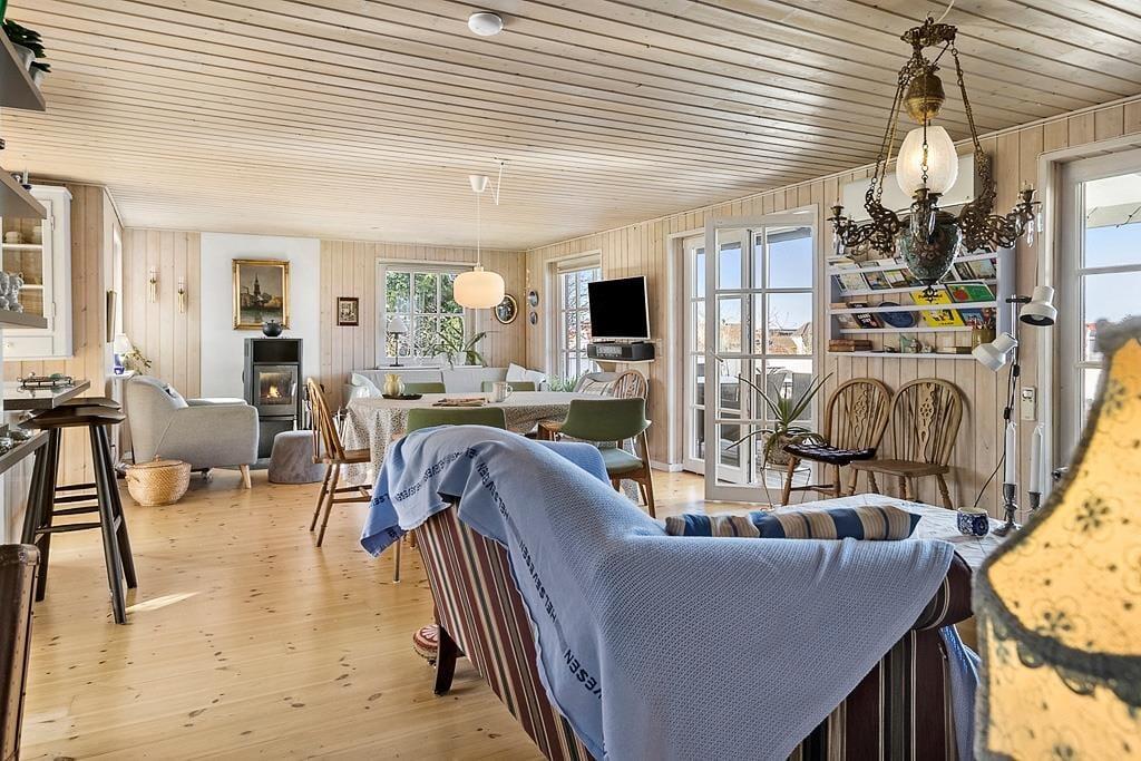 Når du træder indenfor i sommerhuset, bliver du mødt af en varm og indbydende atmosfære. De hyggelige rum indbyder til afslapning og samvær. Stuen er det ideelle sted at tilbringe tid med dine nærmeste, hvor I kan nyde hinandens selskab og skabe minder for livet.
