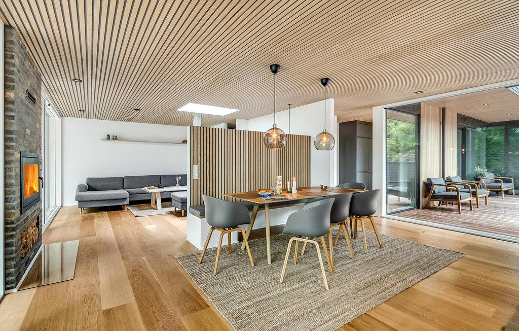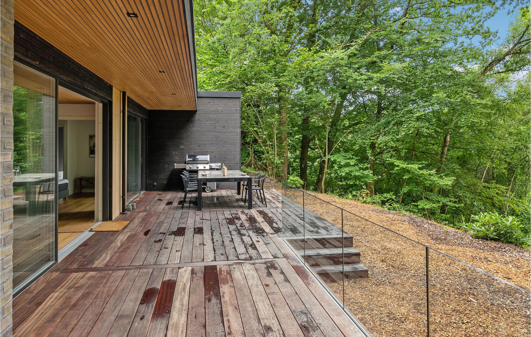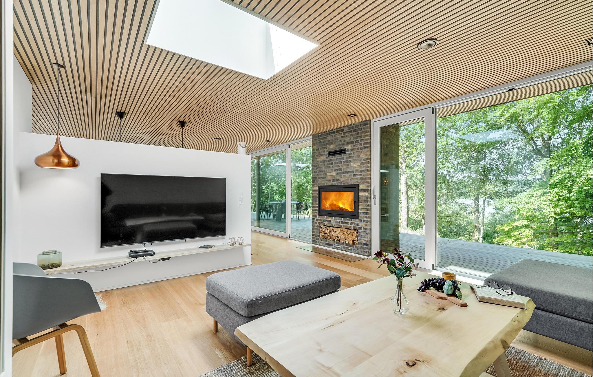 Glæd jer til en herlig ferie i dette skønne sommerhus, som ligger på en flot naturgrund. Her vil I straks føle jer hjemme, da huset er gennemtænkt og stilrent indrettet med komfortable løsninger. Her kommer I ikke til at mangle noget. Nyd den friske luft på terrassen med udsigt til søen over morgenmaden eller en grillmiddag i sommerhalvåret. I de kolde måneder kan I læne jer tilbage i sofaen med en bog, mens ilden knitrer i brændeovnen.