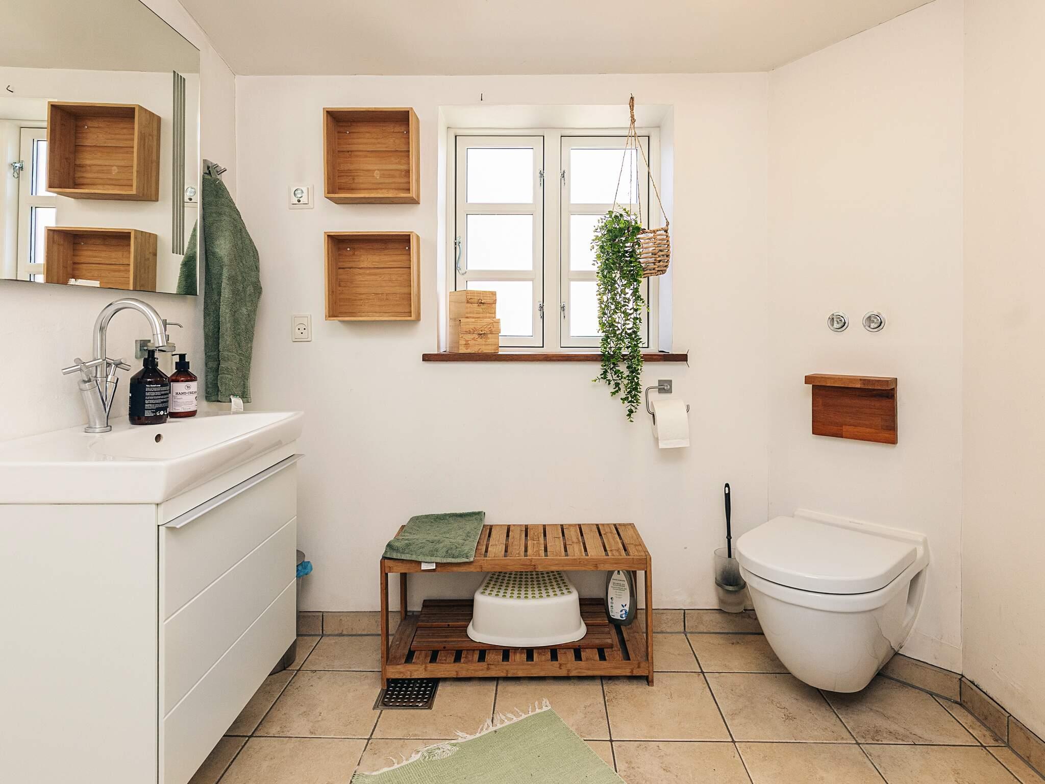 Bad/wc: Wc, håndvask, bruseniche, gulvvarme