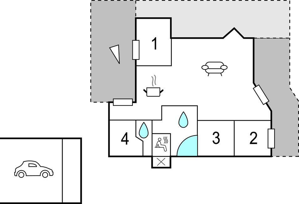 - Åben og overdækket terrasse