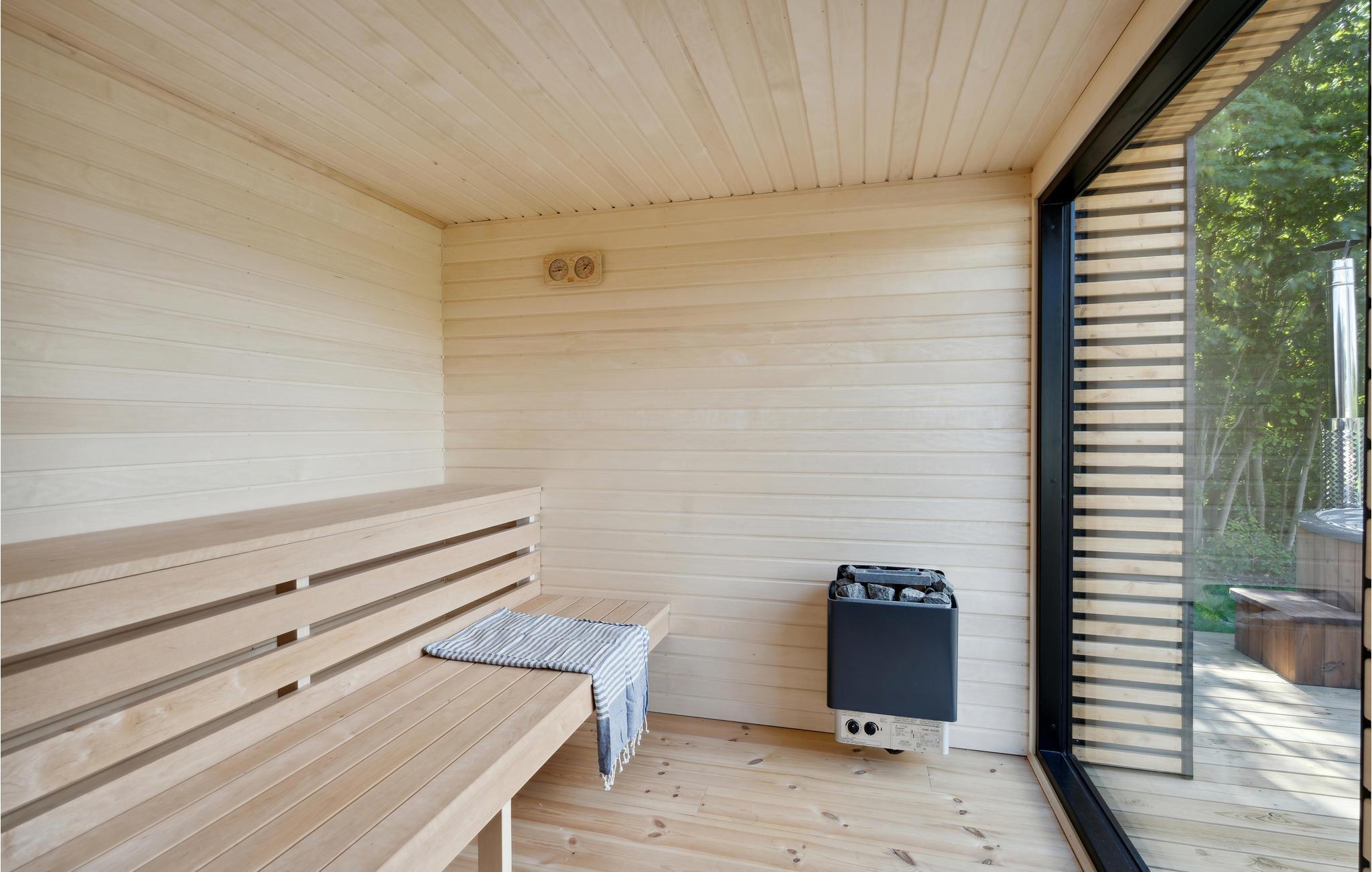 I kommer heller ikke til at mangle forkælelse på ferien, for der er spabad i huset, mens I kan se frem til sauna og et vildmarksbad i haven. Blød de ømme muskler op efter dagens strabadser og nyd en rolig stund, mens aftenluften kommer snigende, og mørket falder på. Dæk op til sommerens måltider på den delvist overdækkede terrasse, og senere kan I samles ved bålstedet til skumfiduser og snobrød.