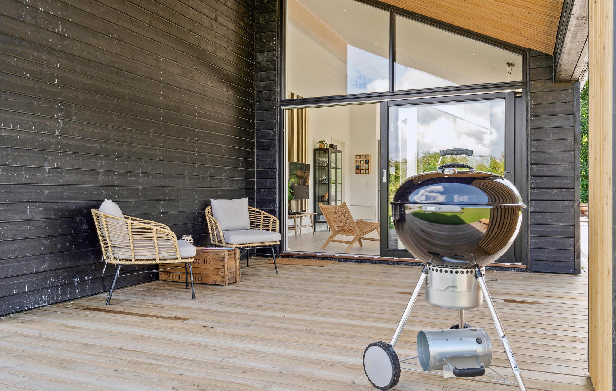 Dette imponerende sommerhus emmer af lækre løsninger og ligger tæt på Bukkemoses skønne sandstrand.