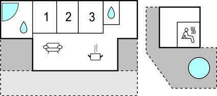 Opholdsstue/køkken - 1 Soveplads. (Sofa, madras eller lignende).