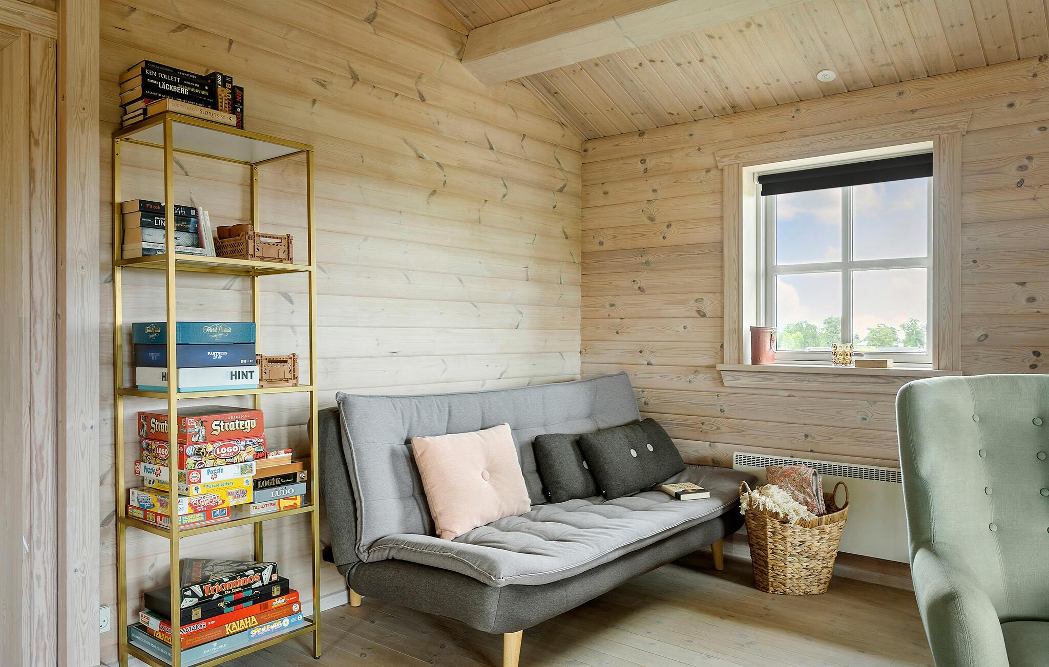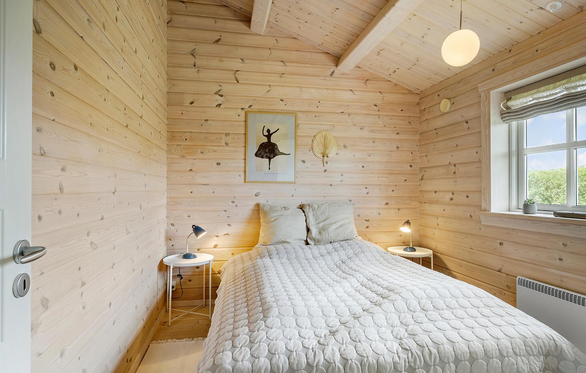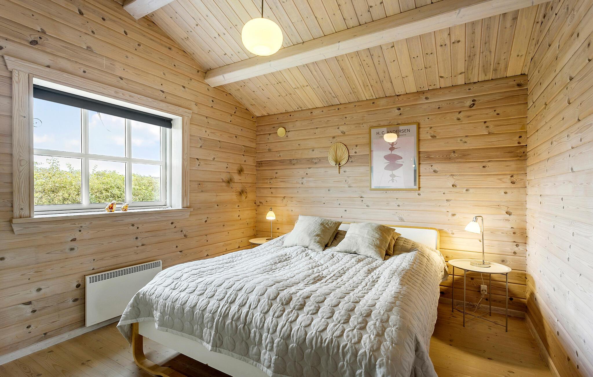 Dette charmerende sommerhus ligger nær Østerskov på Langeland, og her venter der jer en ferie med fred, ro og komfort. Huset er lyst og rummeligt med en behagelig farveskala, der gør, at skuldrene automatisk sænker sig. Begynd dagene med en fælles morgenmad rundt om spisebordet i den hyggelige stue, inden det går løs med dagens eventyr. Hvis I ikke skal skynde jer ud ad døren, kan I sætte jer til rette i de bløde møbler med en god bog og ild i brændeovnen.