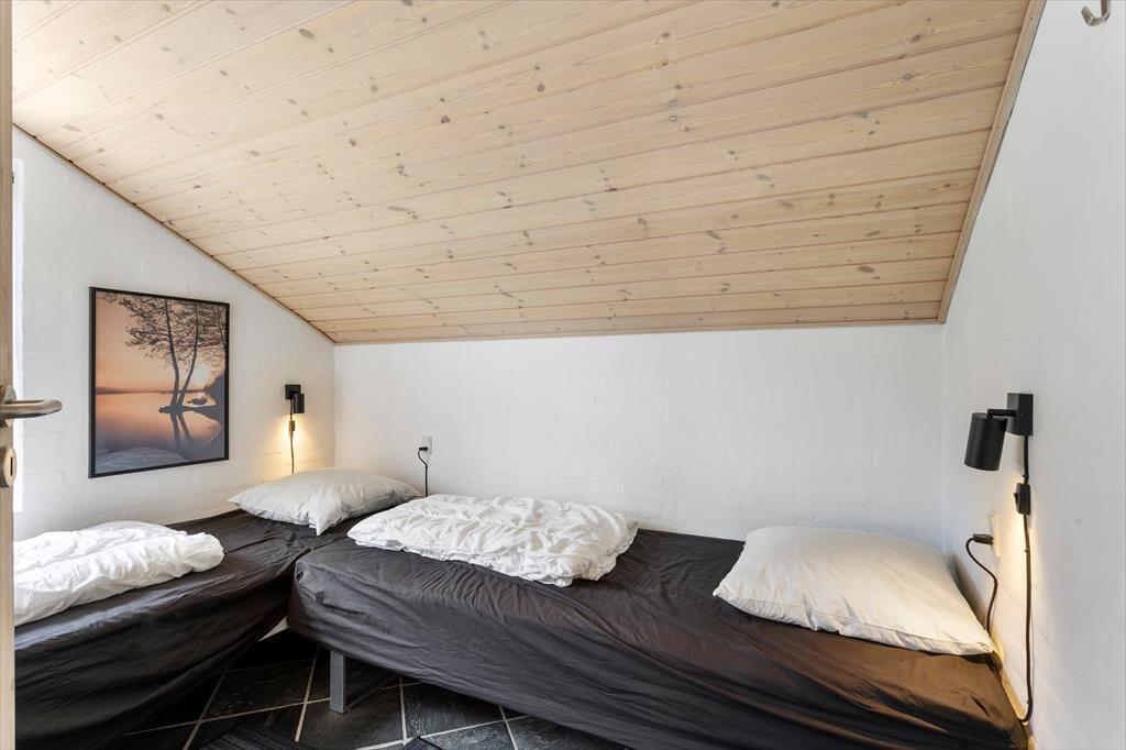 Sommerhuset byder på hele 118 m² veludnyttet bolig med god plads til op til 10 personer fordelt på fem soveværelser. Det centrale køkken/alrum er lyst og moderne indrettet og fungerer som husets naturlige samlingspunkt. Her er masser af bordplads og alle de nødvendige faciliteter til at lave mad sammen og nyde ferien i fællesskab. Brændeovnen skaber hygge på kølige aftener, og de store vinduespartier lukker lyset ind og forbinder inde- og udeliv på smukkeste vis. Huset har to badeværelser – det ene med bruser, det andet med både sauna og indendørs spabad, som er oplagt til wellness og afslapning efter en lang dag i naturen. Her er tænkt på både komfort og funktionalitet, og huset har selvfølgelig også TV og lynhurtig opladning til elbilen.