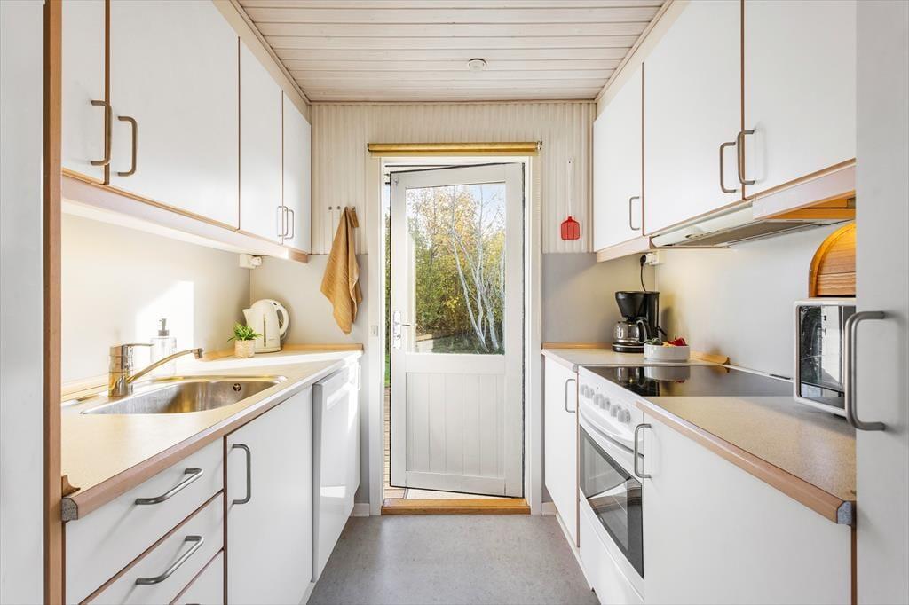 Sommerhuset er fra 1973 og emmer af klassisk charme kombineret med moderne komfort. Det veludstyrede køkken ligger i åben forbindelse med stuen, hvor brændeovnen og varmepumpen sikrer behagelig temperatur og hyggelig atmosfære året rundt. Indretningen er lys og enkel, med fokus på det nære og funktionelle – her handler ferien om samvær og ro. Huset har tre værelser, der rummer alt, hvad du har brug for, uanset om du er afsted som familie eller par, der ønsker et fredeligt fristed tæt på naturen.