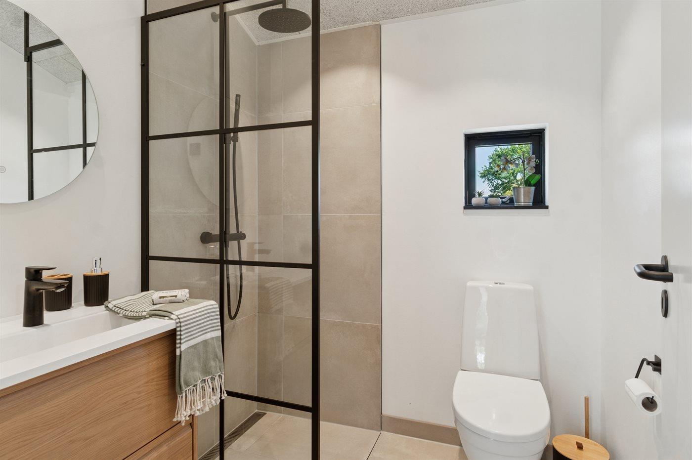 Der er 1 badeværelse med bruseniche og 1 toilet.. Der er gulvvarme på 1 badeværelse.