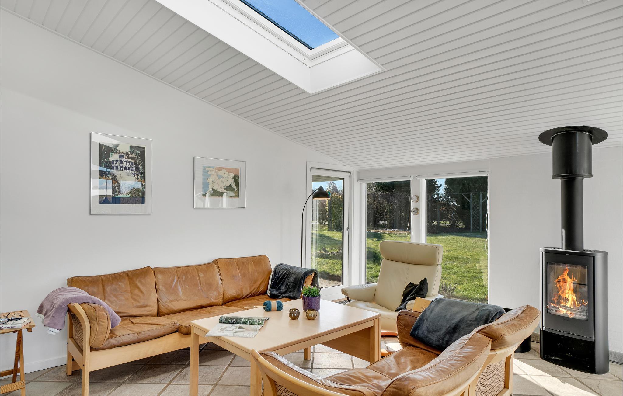 Der er gode rammer til hele familien i husets attraktive rum, som har et stilrent og komfortabelt udtryk med store lysindfald. Nyd dagens måltider foran de store gulv til loft-vinduer, der næsten giver jer følelsen af at sidde i haven. Efter en lang dag med aktiviteter i området kan I læne jer tilbage i sofaen, mens ilden knitrer stemningsfuldt i brændeovnen.