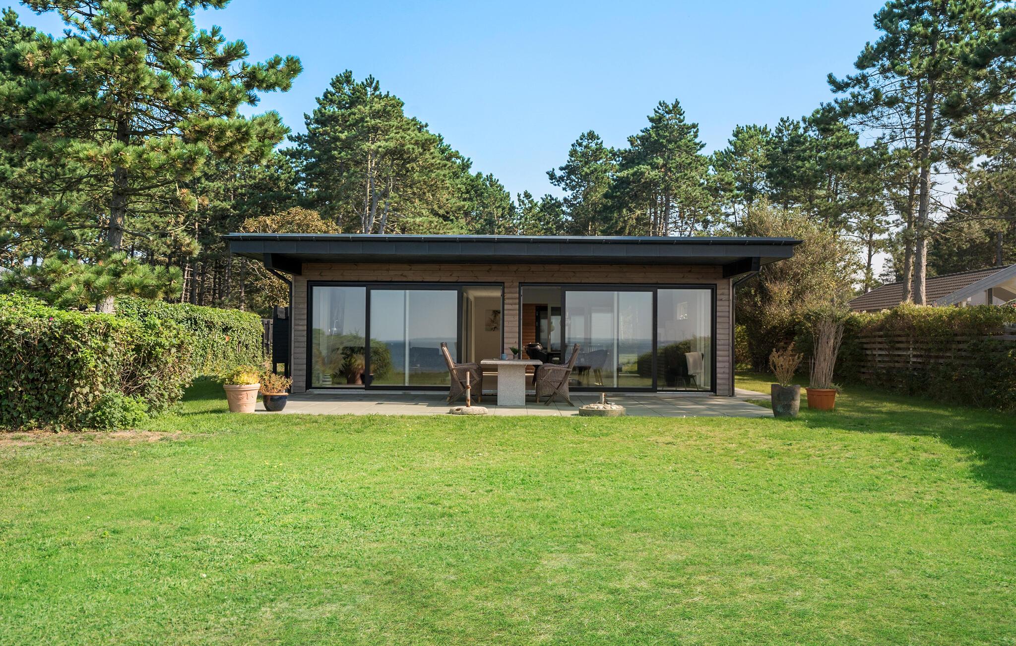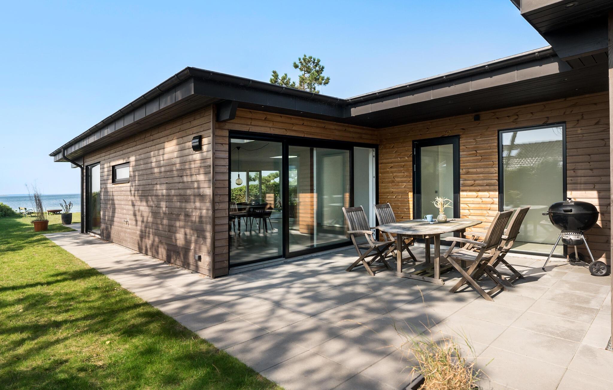 Glæd jer til et ophold i et helt særligt feriehus på strandgrund med panoramaudsigt.