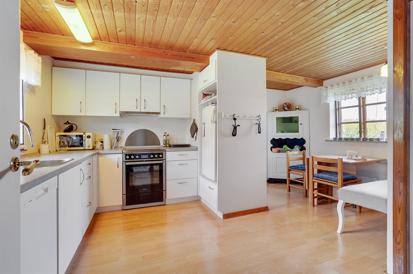 Køkkenet er udstyret med 1 køleskab. Der er 4 keramiske kogeplader, varmluftovn, mikrobølgeovn samt opvaskemaskine.