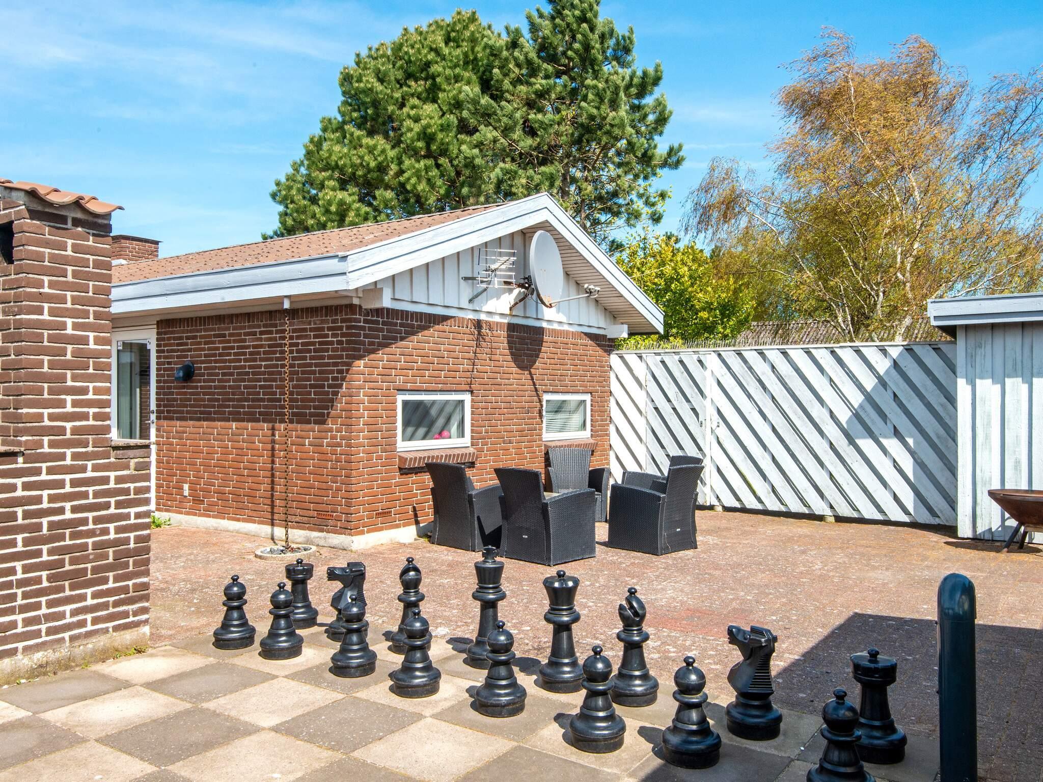 Der er direkte udgang fra poolafdelingen til en flot gårdhave med flere hyggekroge, hvor der er skakspil i stor størrelse. Hvis aftensmaden skal være på grill, så er der en muret grill udenfor.