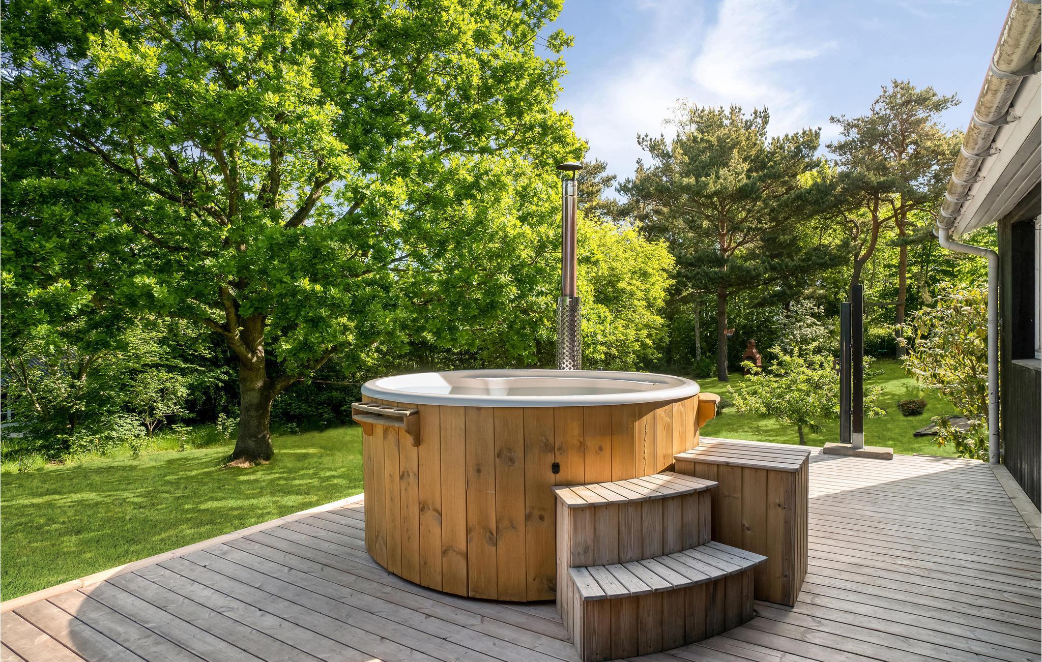 Dette skønne sommerhus er en sand oase for en familie. Her kan I tilbringe nogle fredfyldte dage og nyde faciliteterne og de dejlige rammer. Efter en lang dag på farten kan I hygge jer med madlavning, brætspil og gode bøger i det lyse opholdsrum, mens ilden knitrer i brændeovnen. I kommer sikkert også til at bruge en god del af tiden på den store træterrasse i sommerhalvåret. Læn jer tilbage i vildmarksbadet og fyld dagene med hyggelige grillaftener, hvor børnene kan lege i haven før og efter spisetid.