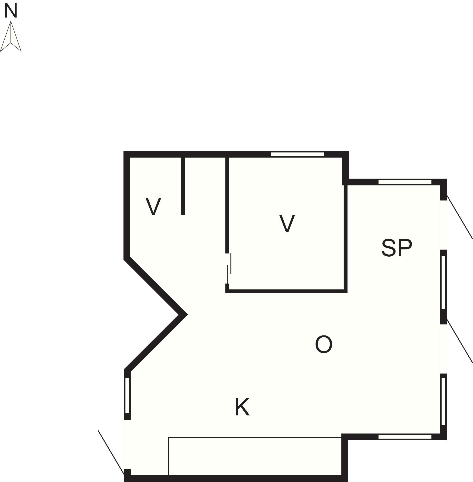 Hytten er 18 m2 og består af et fællesrum med spiseplads, sofa og et lille te-køkken med kaffemaskine, køleskab og miniovn. Der er 2 delvist sammenhængende soveværelser med henholdsvis en dobbeltseng og en køjeseng. der kan også redes op til 2 personer på sovesofaen i alrummet.