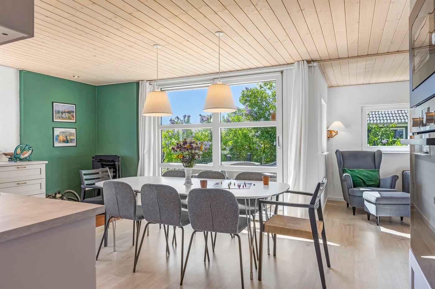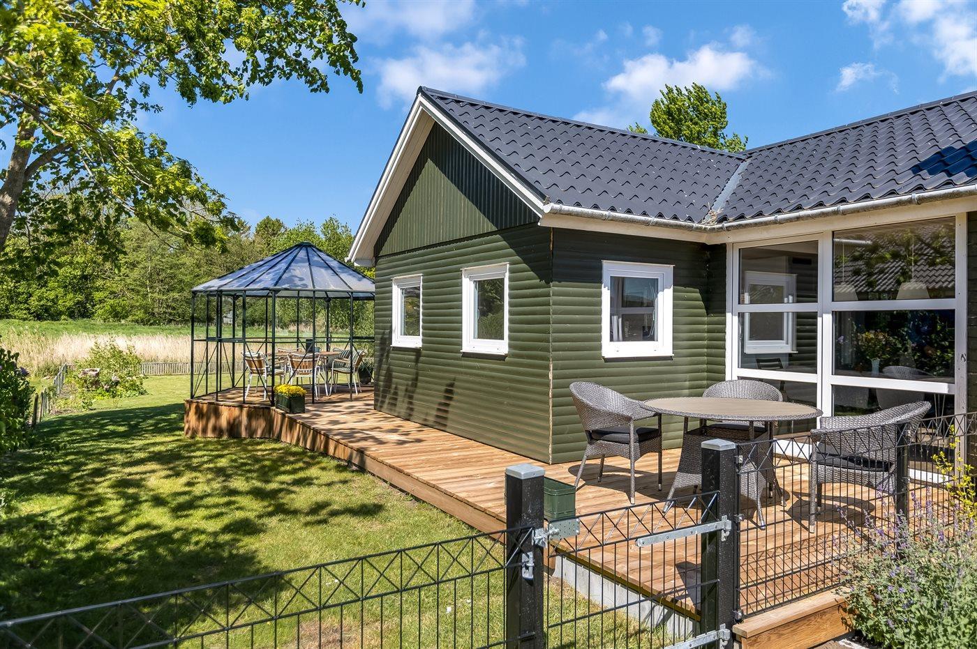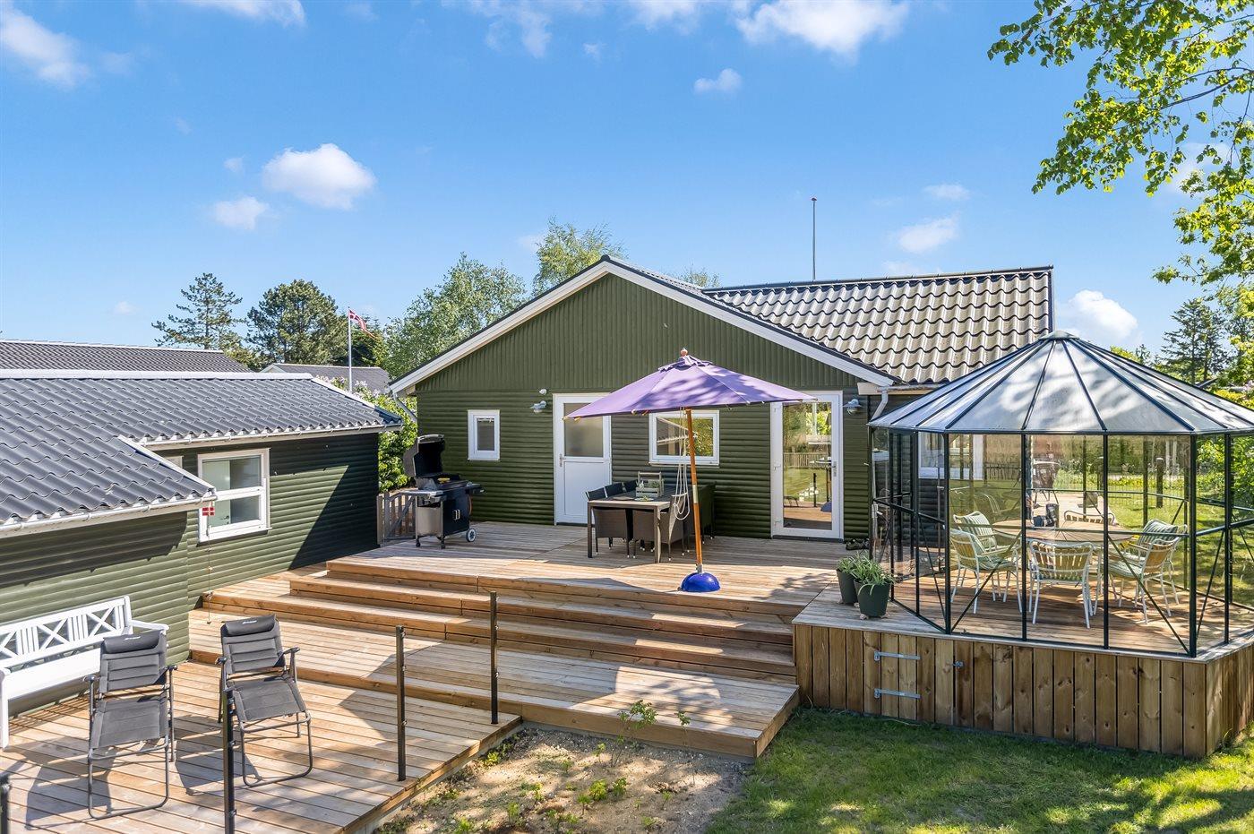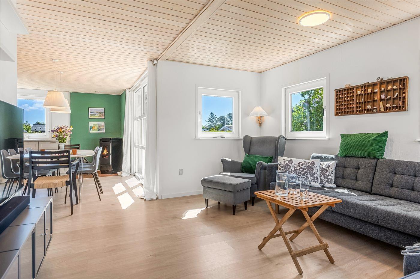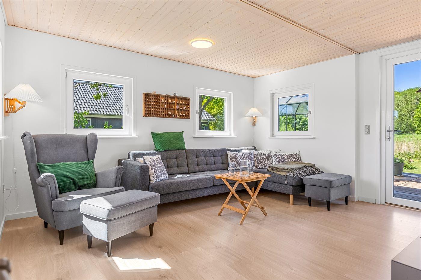 Det velindrettede sommerhus byder på en afslappet atmosfære med masser af plads og komfort – helt perfekt til en ferie med familien eller til flere par.