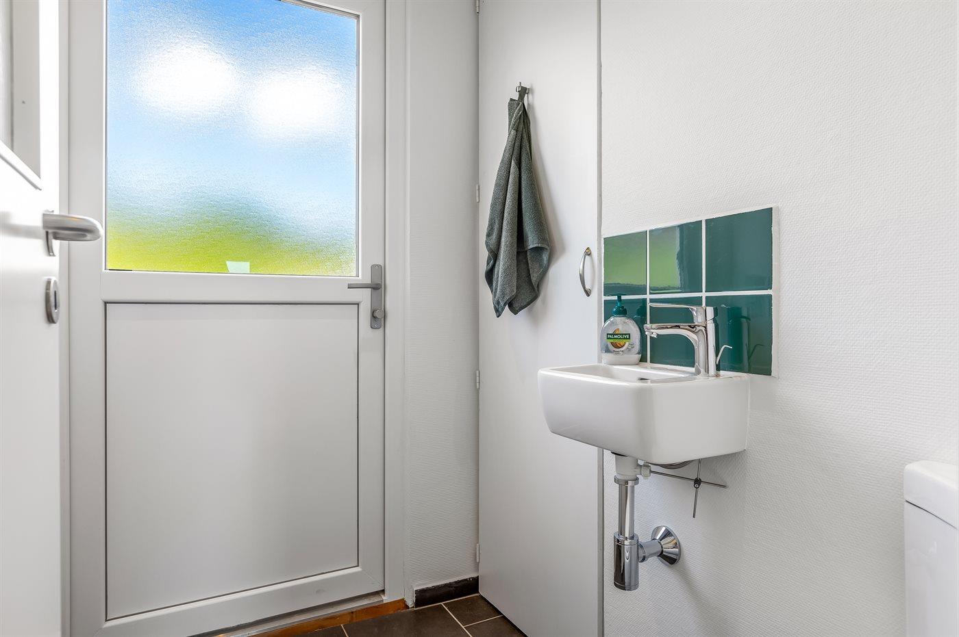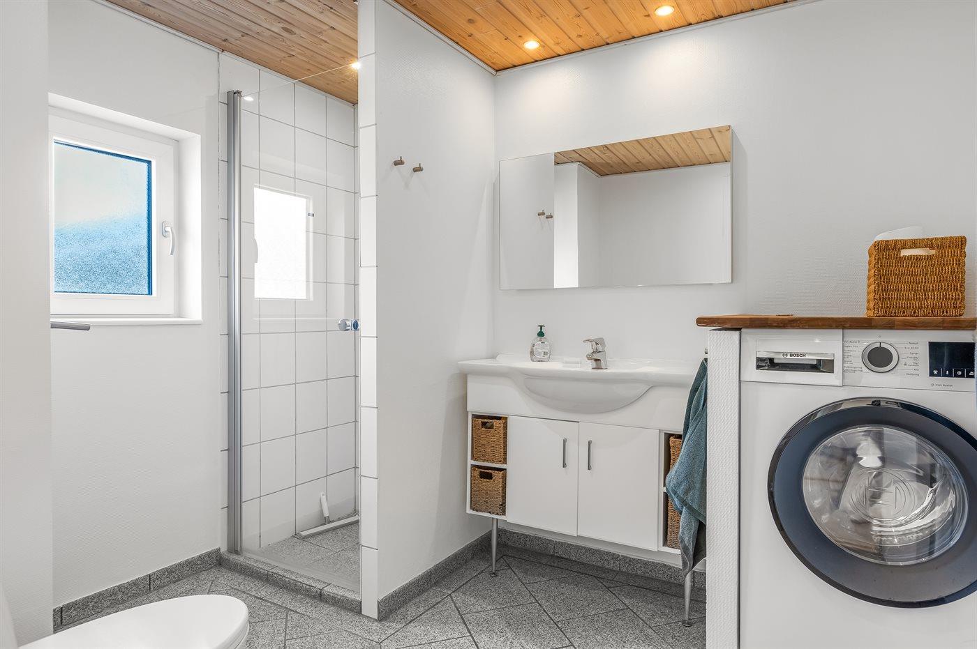 Der er 1 badeværelse med bruseniche og 2 toiletter, heraf 1 gæstetoilet. Der er gulvvarme på 1 badeværelse.