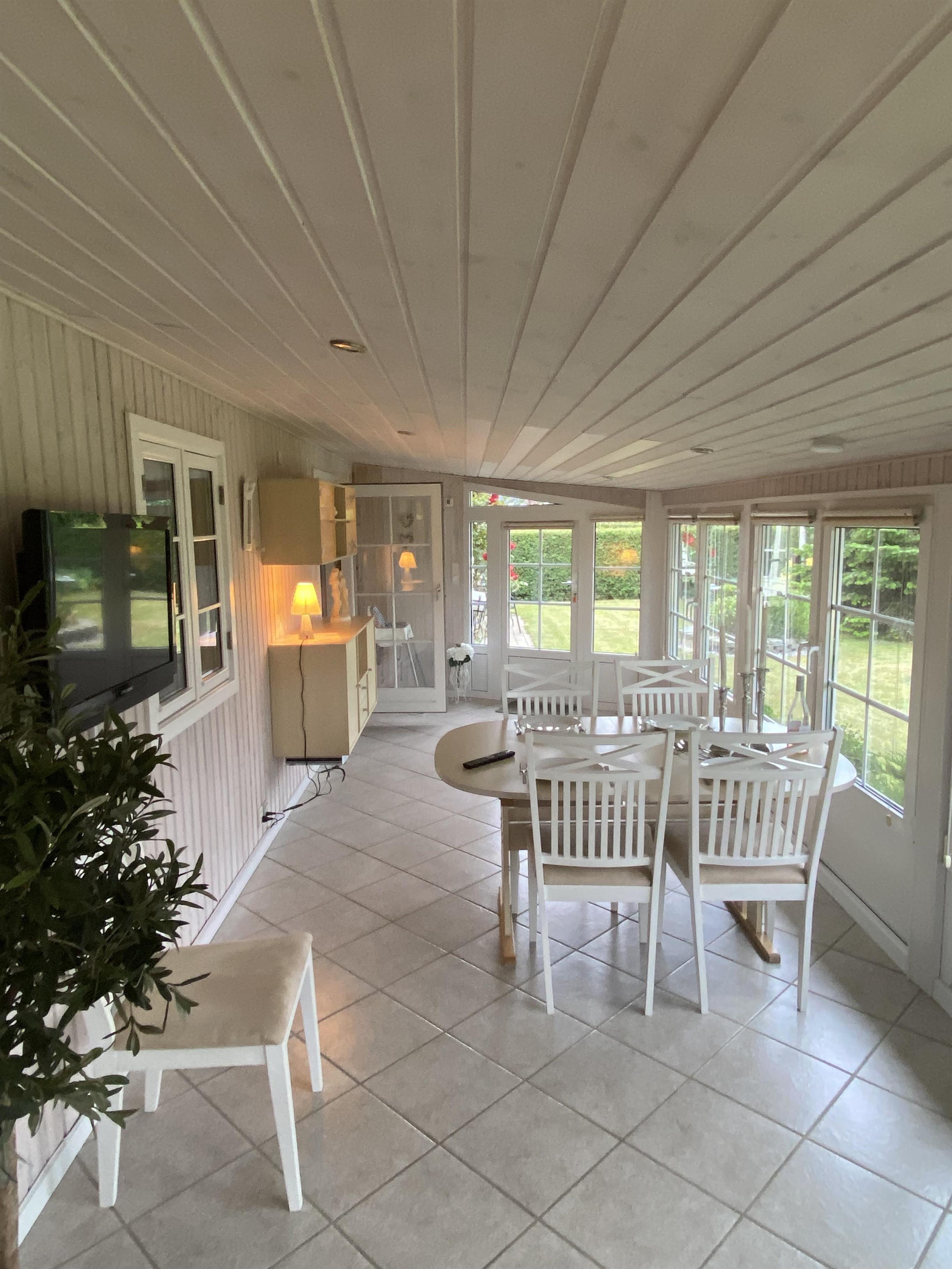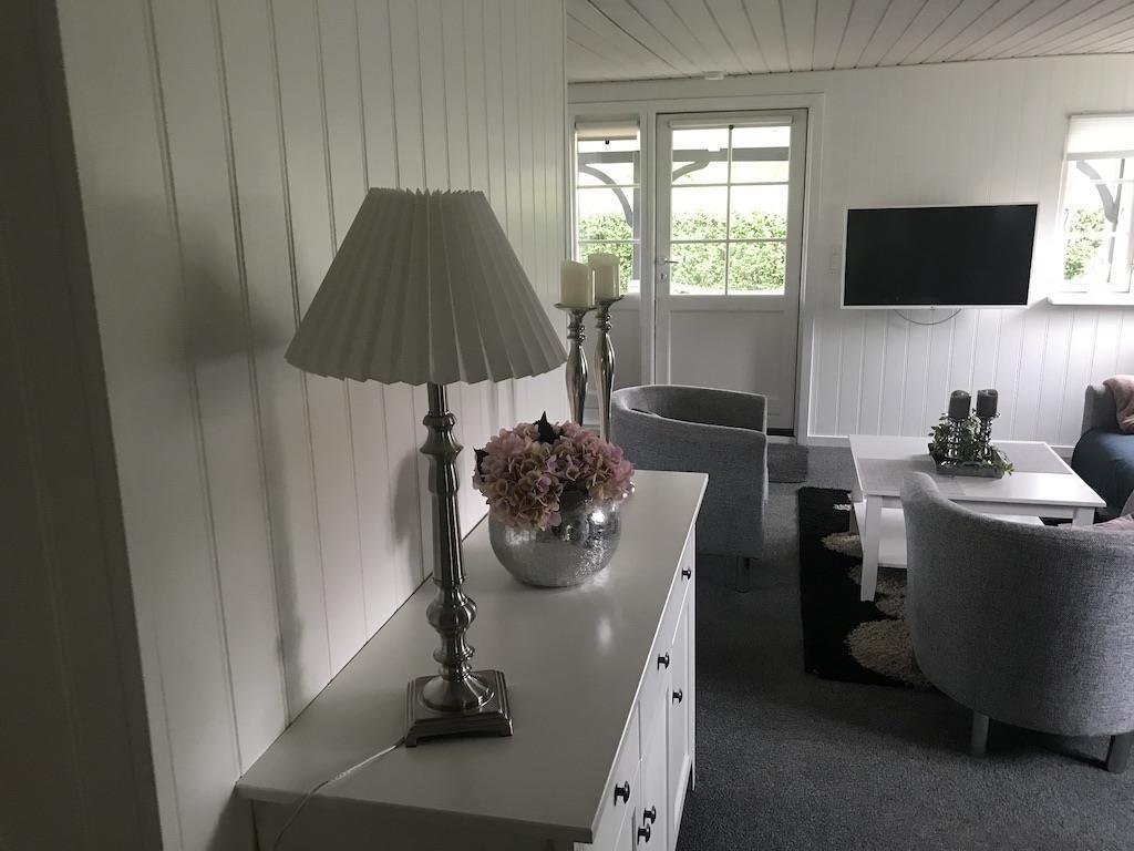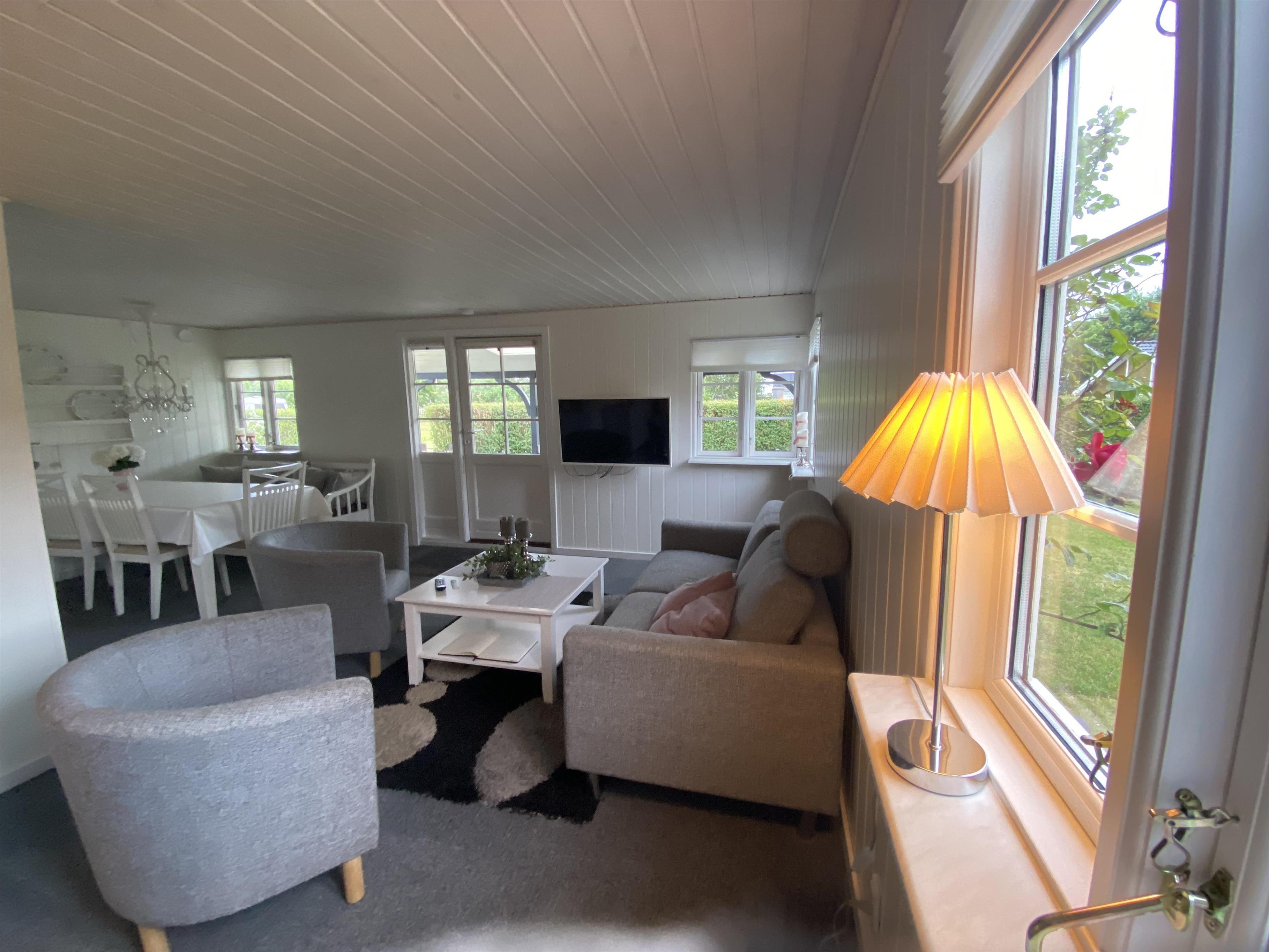 Der er den skønneste, store havestue med dejlig udsigt til haven og alt det grønne. I havestuen er der både en hyggekrog og en spiseplads. Her er der et TV med tyske kanaler. Har man først taget plads i dette skønne rum, er det svært at løsrive sig igen. I havestuen kan man se tysk TV via parabol i stuen er der streaming via Chromecast.