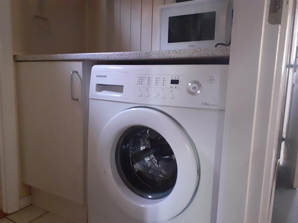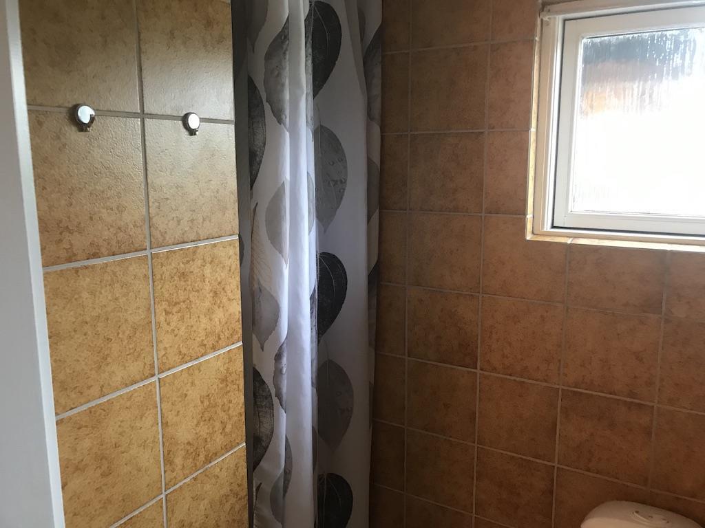 Der er badeværelse med brusebad. Der er vaskemaskine i huset.