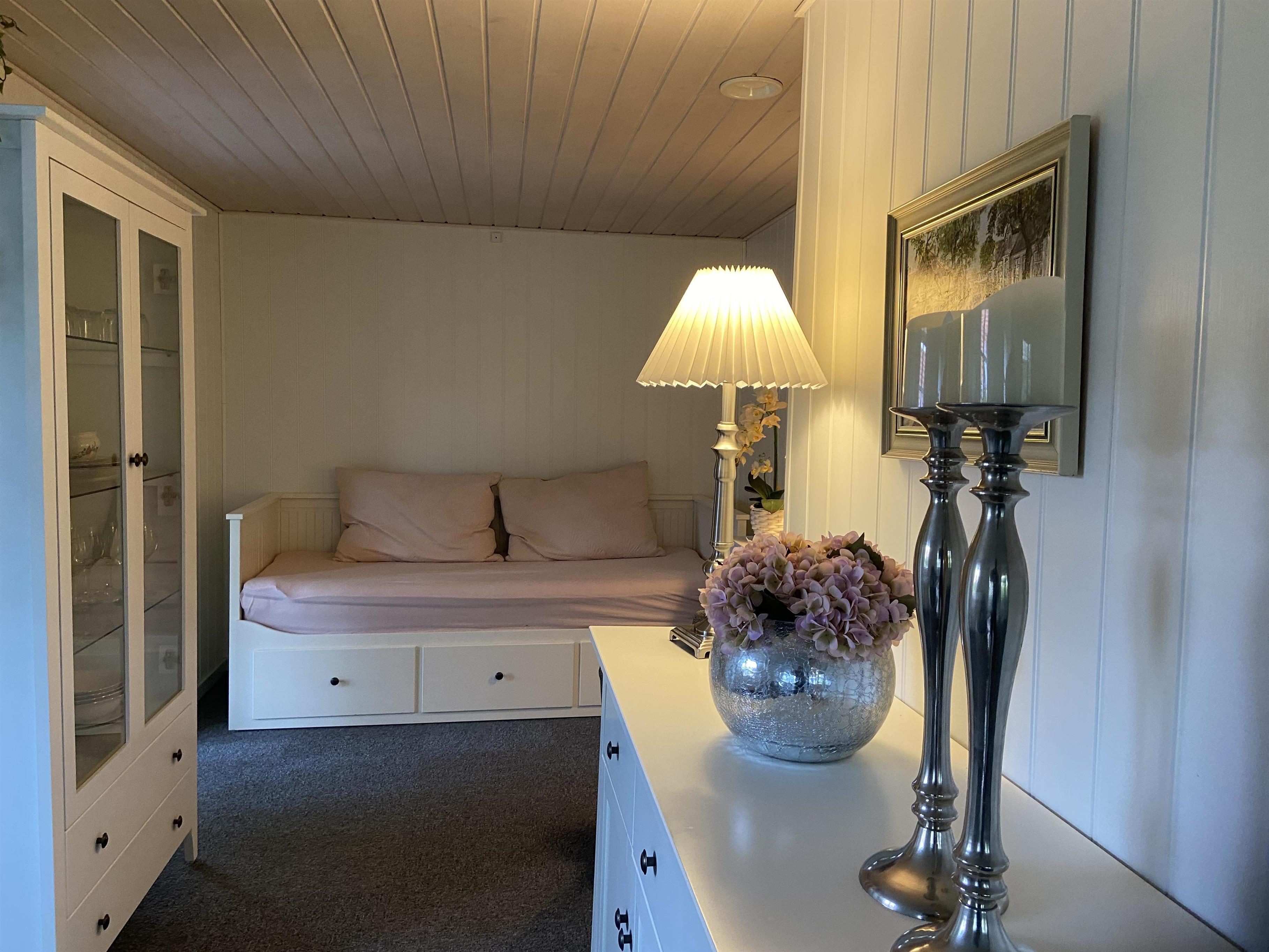 Huset har 3 dejlige soveværelser. To af soveværelserne er indrettet med dobbeltsenge og det tredje soveværelse har en enkeltseng. Derudover er der mulighed for en opredning til 1 person i stuen.