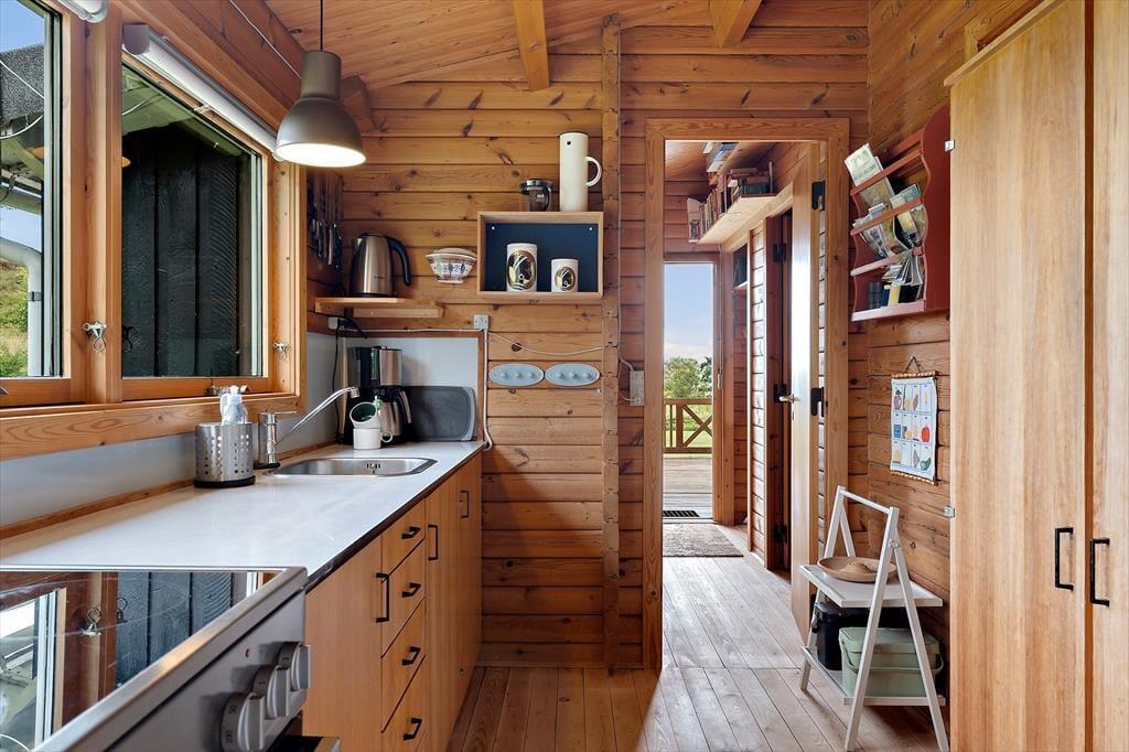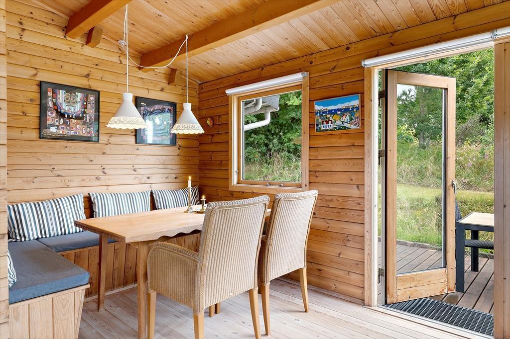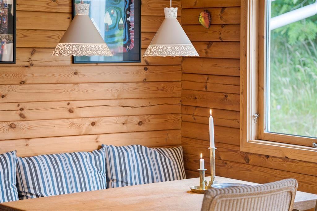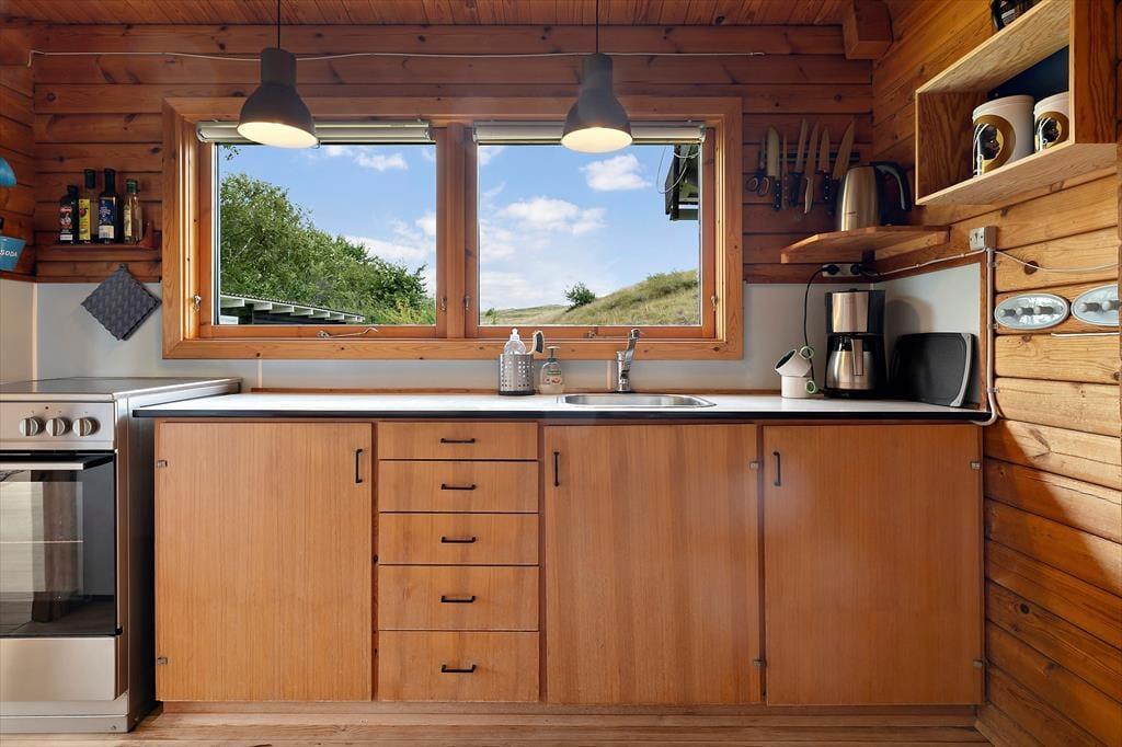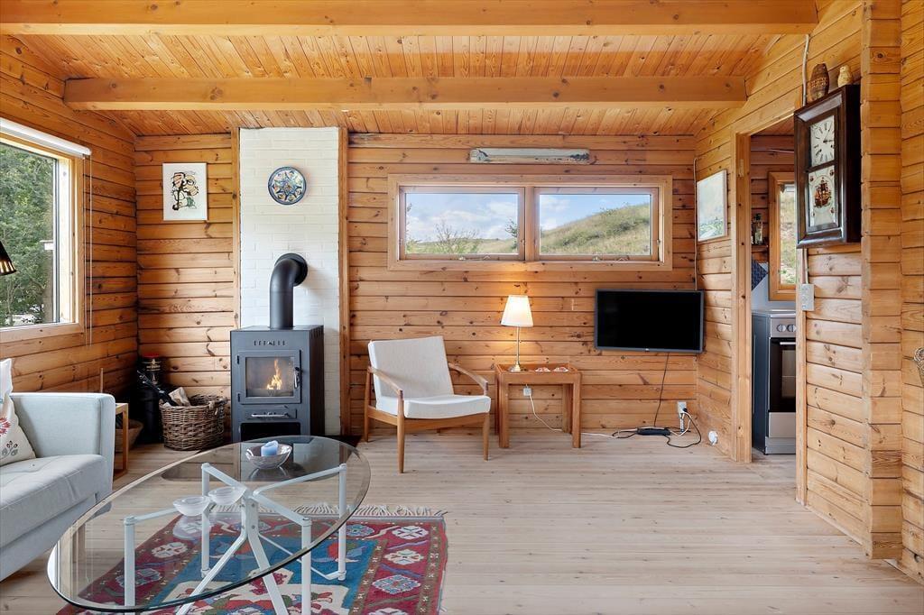 Det klassiske træhus på 58 m2 har ligget i det smukke landskab siden 1972. Trods løbende opdateringer har det fået lov til at bevare sin originale charme og venlige atmosfære, så det er et af den slags huse, man straks kan føle sig hjemme i. I kan derfor roligt finde strikketøjet eller krimien frem, brygge en god kop kaffe og gøre klar til en rolig eftermiddag i stuen nær brændeovnen. Et af husets moderne træk er tv’et med Chromecast, som I kan finde i stuen. Til gengæld er der ingen wi-fi, så I må klare jer med jeres eget mobilnetværk – eller bruge det som en kærkommen lejlighed til at melde jer lidt ud af nyhedsstrømmen i nogle dage. Et pænt badeværelse hører for øvrigt også til planløsningen foruden tre hyggelige soveværelser.