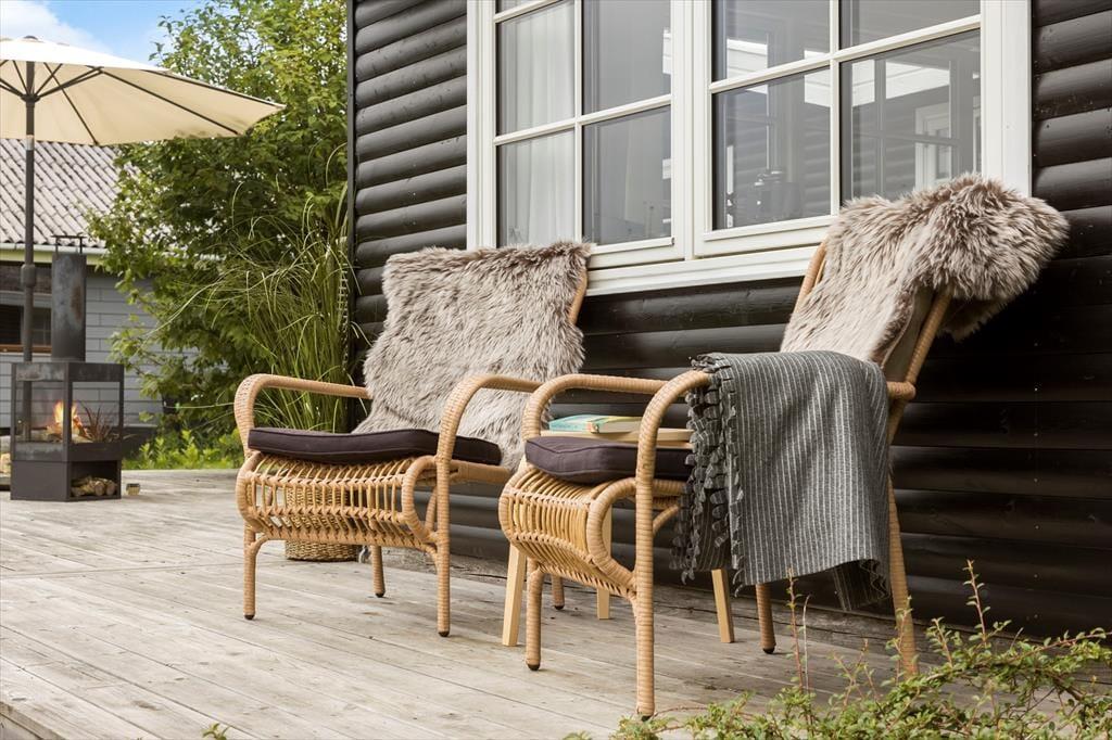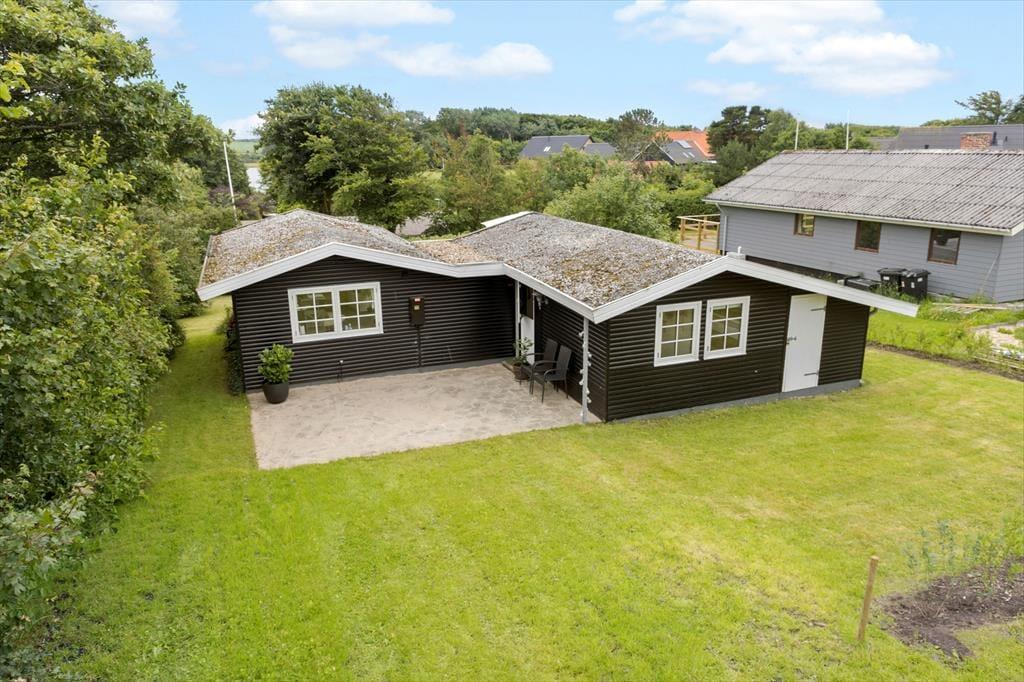 Som vejnavnet afslører, ligger sommerhuset i Doveroddes bakkede landskab, hvilket betyder, at grunden skråner en smule, mens den sydvendte træterrasse er helt plan og hævet over græsplænen. Randbeplantningen sørger for, at udearealerne er ugenerede, men der er tilpas åbent mellem trætoppene, så du kan nyde udsigten til Limfjordens blå vand. De komfortable havemøbler, grillen og parasollen sætter perfekt scenen for udelivet, og alt ånder fred og idyl, når du lukker øjnene og lytter til fuglesangen i en god havestol. Kort sagt er der virkelig lagt op til, at du kan få præcis den form for tilbagelænet feriehygge, du drømmer om i de naturskønne og rolige omgivelser.