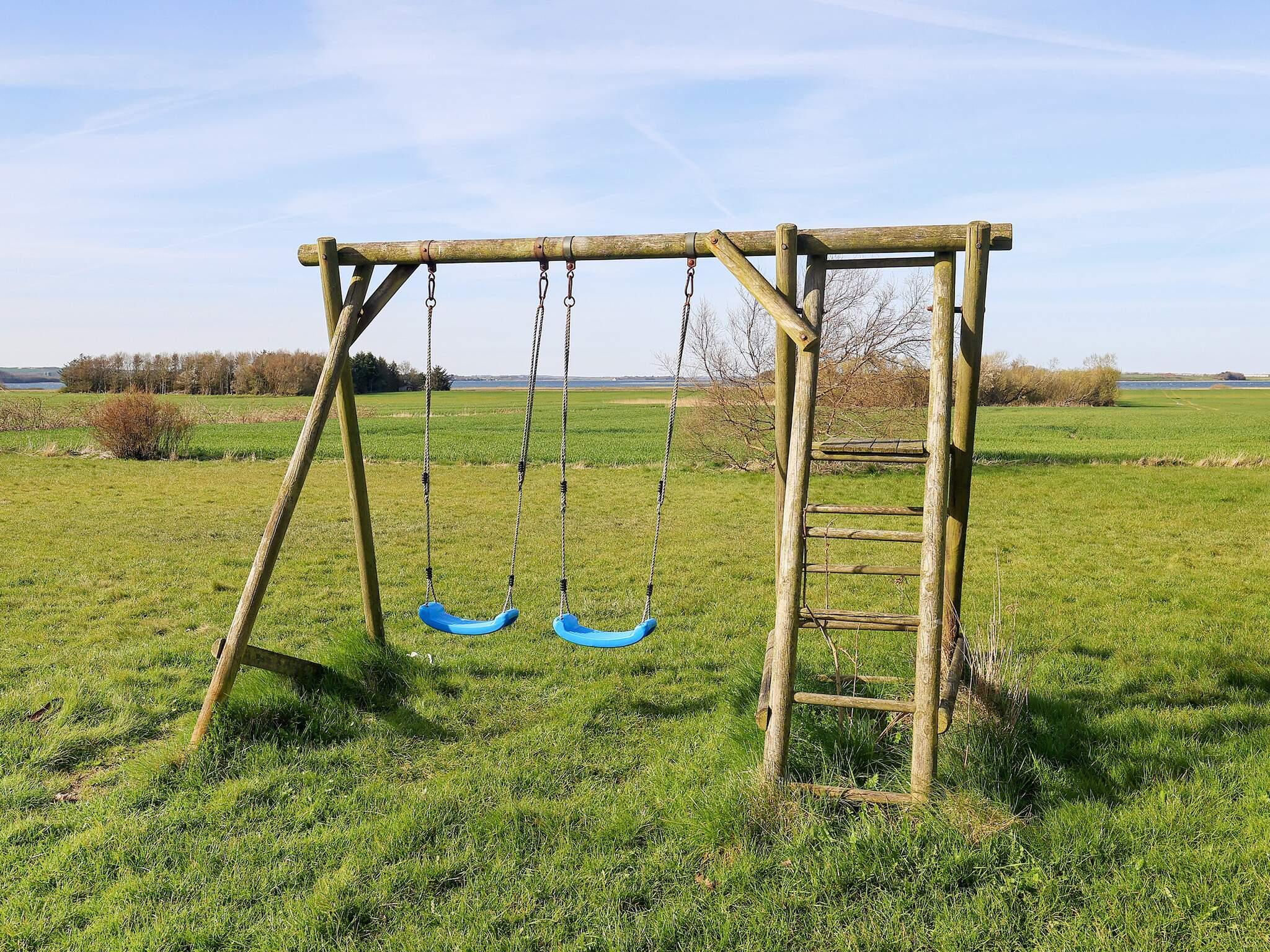 Lejligheden er placeret på en dejlig stor grund som er fælles med lejligheden ved siden af, her er der rig mulighed for diverse spil og leg. Der er havemøbler på græsplænen på nordsiden, hvorfra der fantastisk vandudsigt.