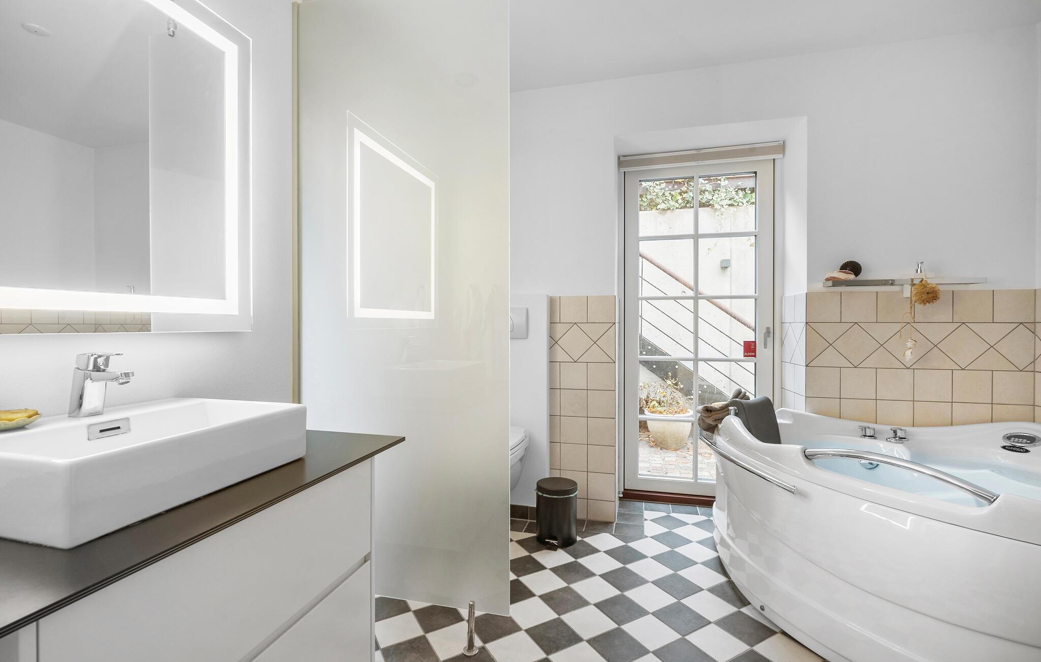 Badeværelse (nr. 1) - WC. Varmt og koldt vand. Bruser og badekar