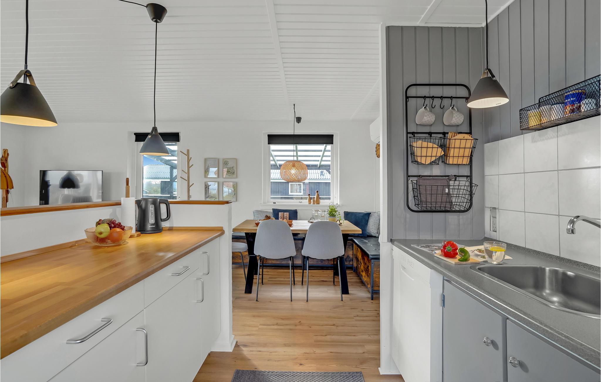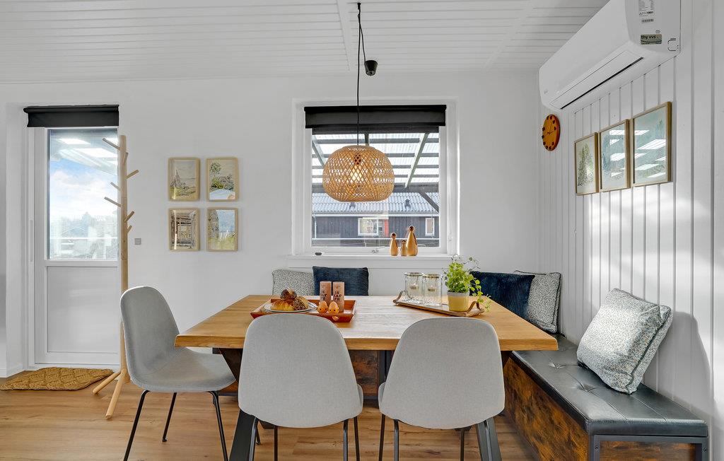 Dette attraktive feriehus ligger roligt i det naturskønne Thy-område, kun 200 meter fra vandet. Det veludstyrede hus byder på et lyst, velindrettet interiør, der skaber en personlig og smagfuld atmosfære. Nyd lækre måltider i det hyggelige spisekøkken og tilbring afslappende timer med en god bog eller hyggelige brætspilsaftener i den lyse stue. På kølige aftener kan I nyde roen i omgivelserne, mens I varmer jer med en kop te foran brændeovnen. Det store terrasseområde byder på flere hjørner og indbyder til afslappende sommerdage. Nyd udsigten over landskabet fra havemøblerne, mens børnene boltrer sig på græsplænen. Her kan I nyde livet.