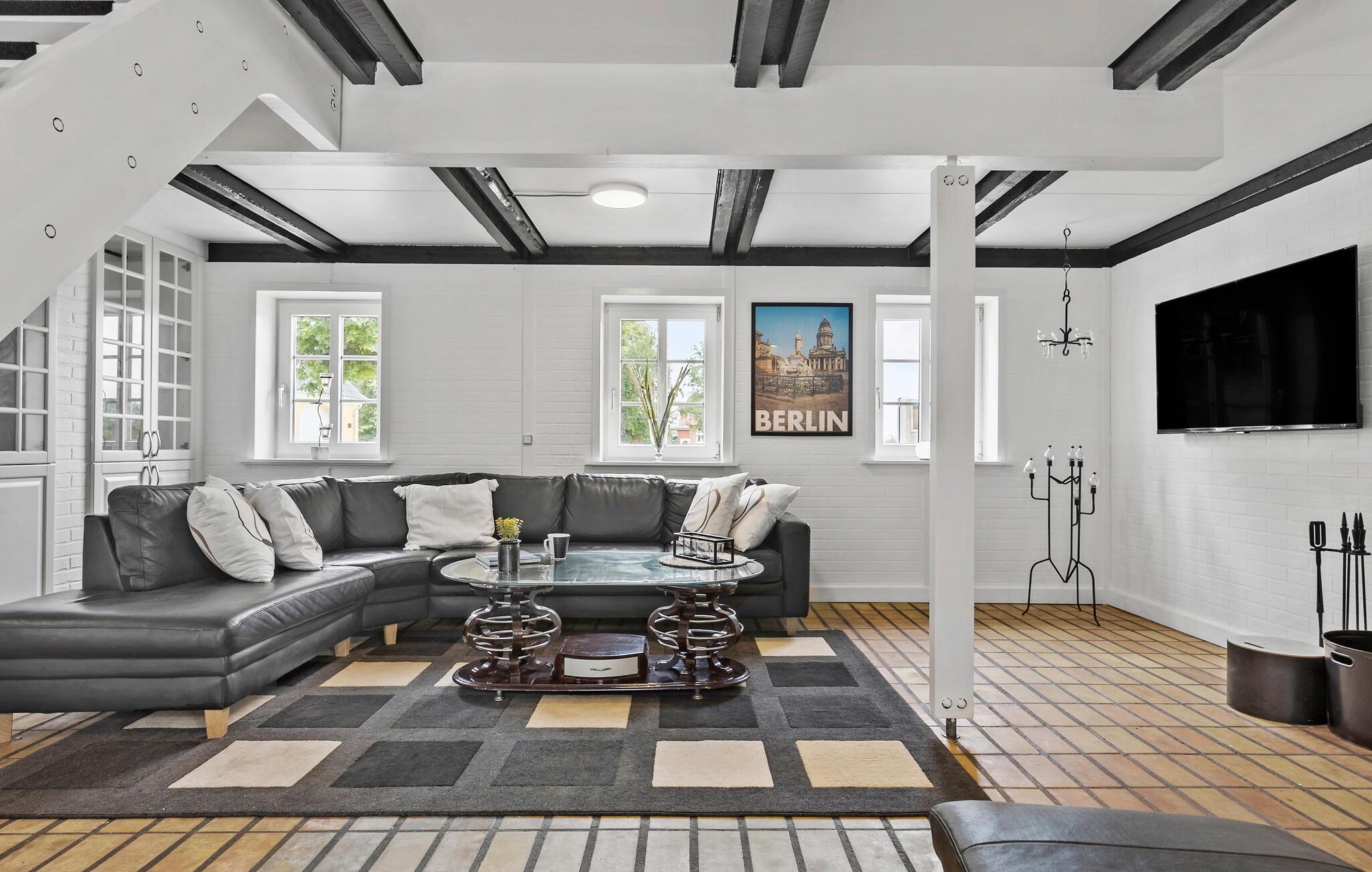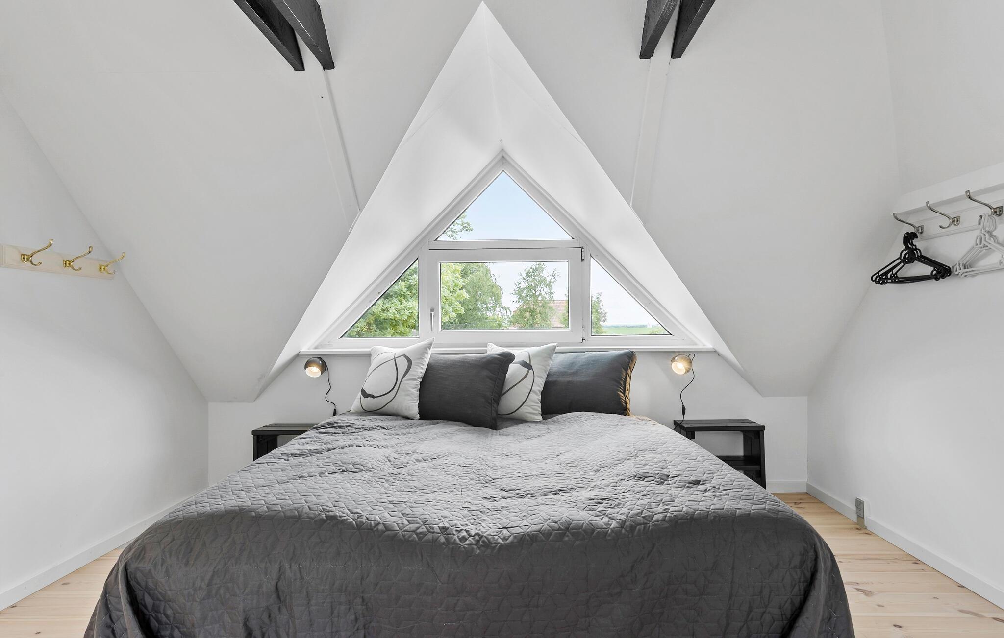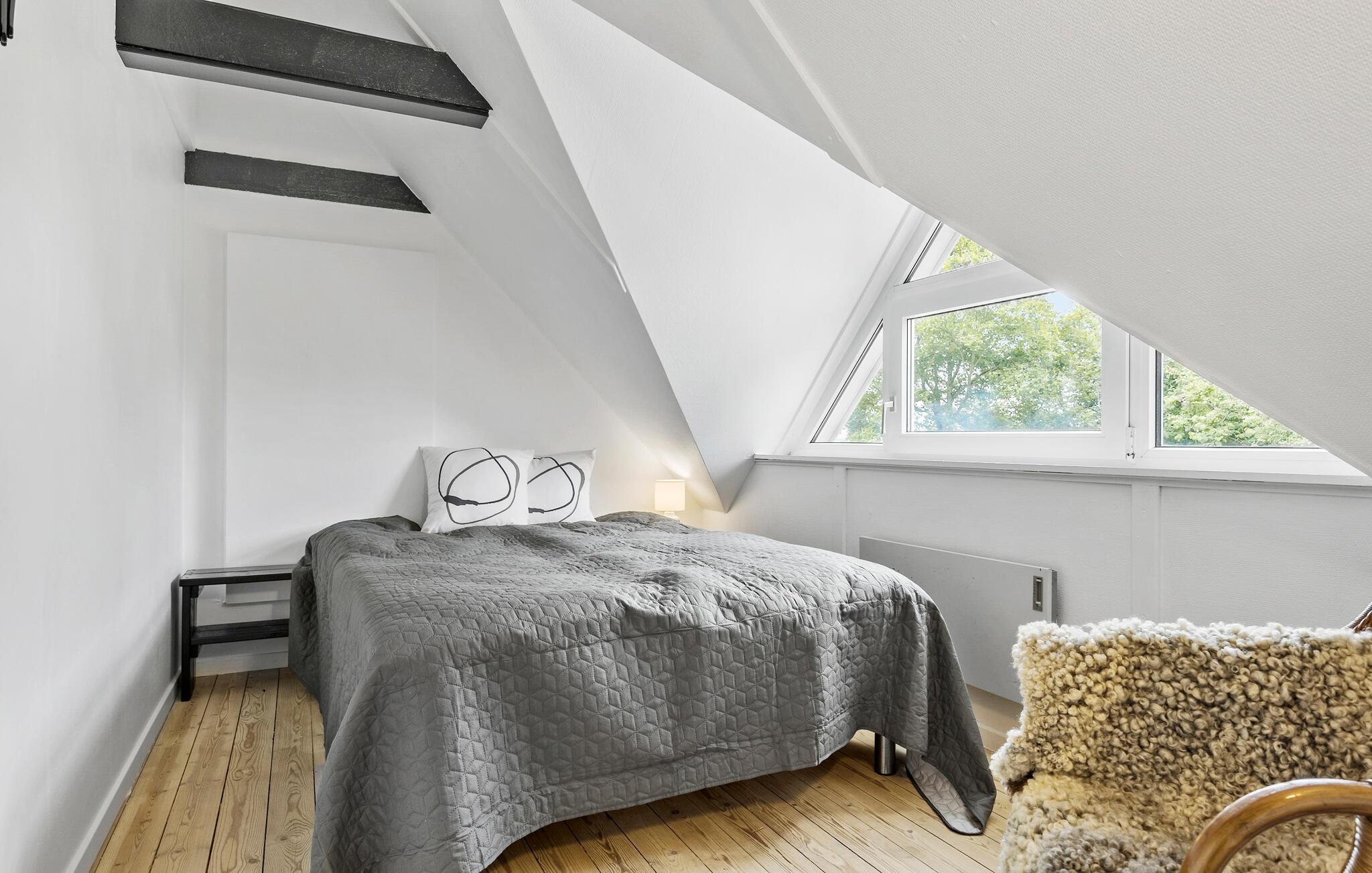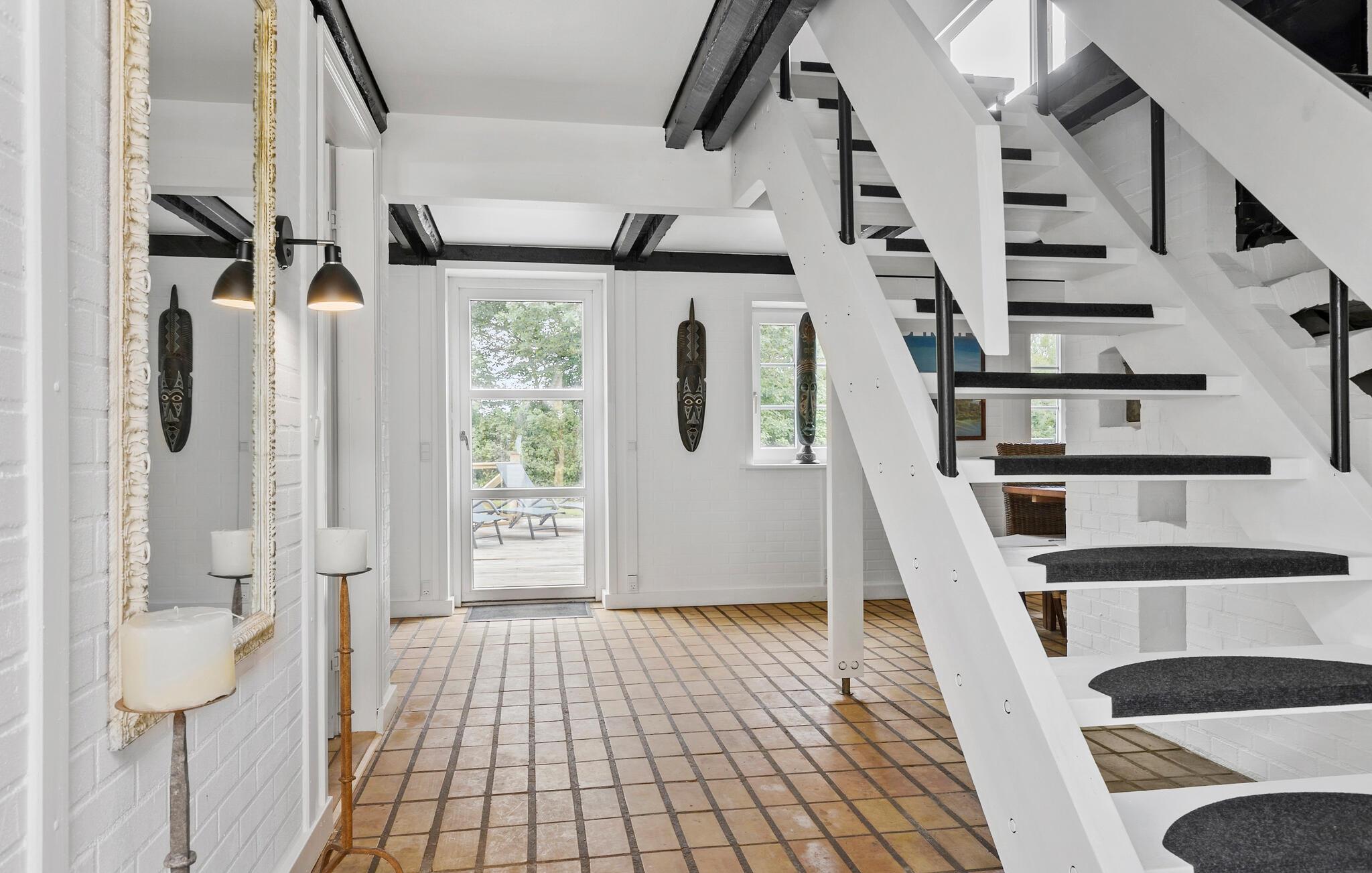 Glæd jer til jeres ferie sammen med hele familien eller en gruppe venner i dette komfortable og store feriehus, som byder på en lys atmosfære, charmerende loftsbjælker og en tiltalende indretning. Her er der noget for enhver smag. Læg jer for eksempel til rette i liggestolene i stuen og nyd den dejlige varme fra brændeovnen. Tænd op i brændeovnen og glæd jer over lyset fra vinduerne ud mod haven. På førstesalen kan I rigtig nyde udsigten over omgivelserne. Her kan I se langt og nyde omgivelserne uanset årstiden.