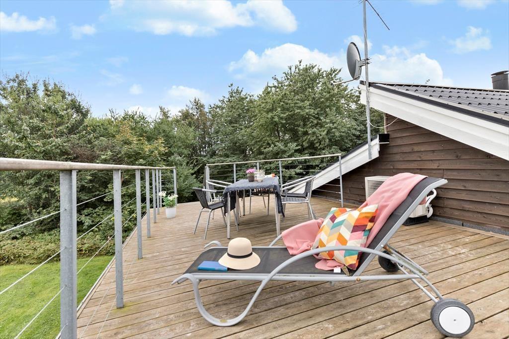 Huset har flere terrasser, hvor I kan nyde solen hele dagen. Fra den øverste terrasse er der en fantastisk havudsigt, som gør det til det perfekte sted at starte dagen med en kop kaffe eller afslutte aftenen med et glas vin. Haven og de andre terrasser giver rig mulighed for grillmiddage, afslapning og leg. Efter en dag på stranden kan I nyde en afslappende tur i saunaen eller spabadet, som sikrer feriestemning på højeste niveau.