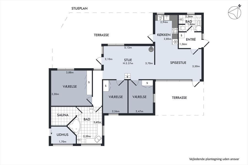 Boligen er på 120 m² og ligger på en 1.200 m² stor grund.
