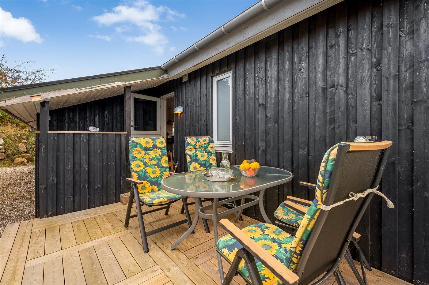 Sommerhuset byder endvidere på nogle utrolig gode terrassearealer på flere sider af huset, så det altid er muligt at nyde solen og finde en lækrog, hvis vejret ikke helt skulle arte sig. Den ene af terrasserne er overdækket, ligesom her også findes et stort og rummeligt shelter med plads til hele familien, hvis man ønsker at sove under åben himmel.