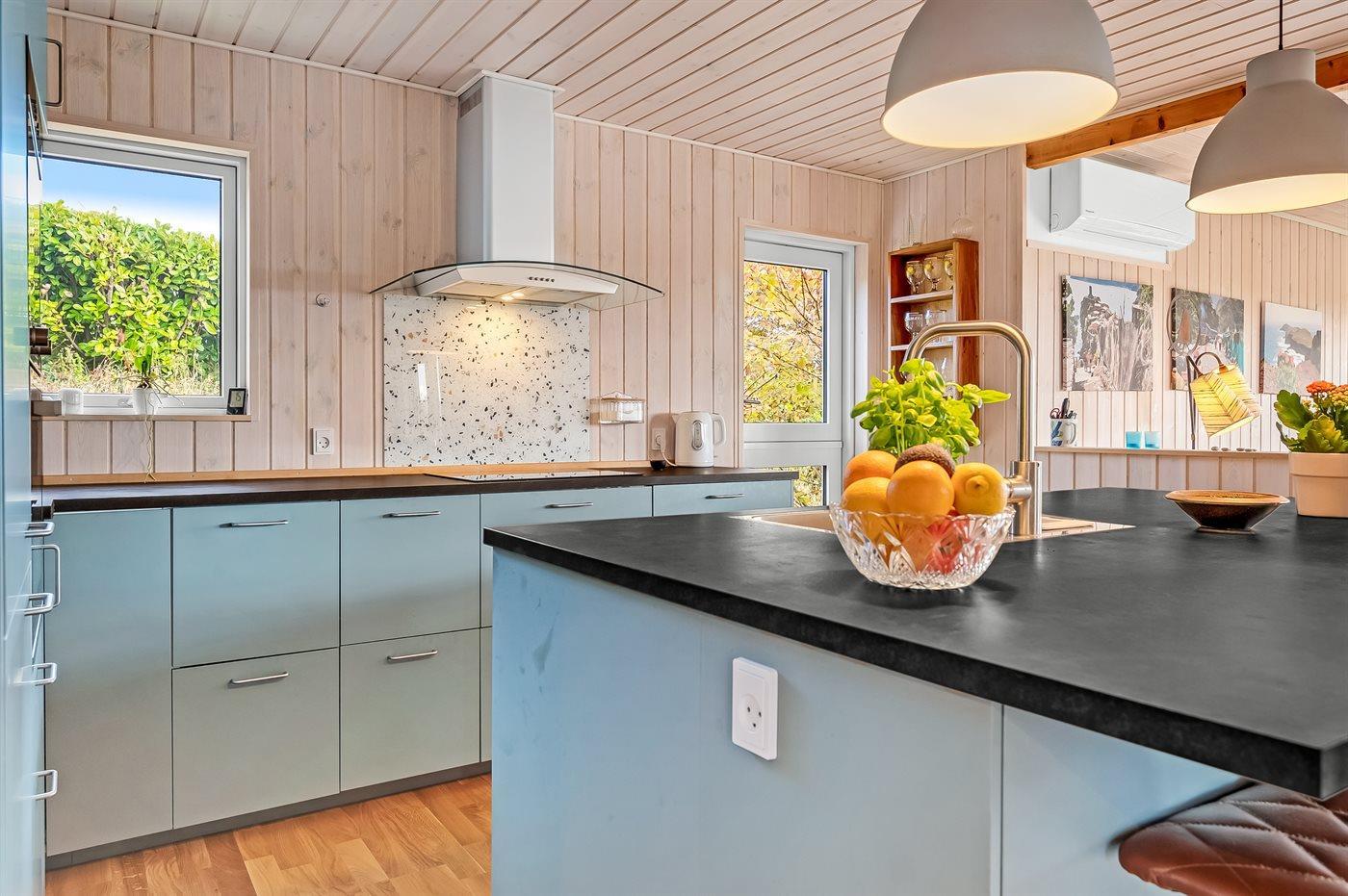Køkkenet er udstyret med 1 køleskab. Der er 4 induktionskogeplader, varmluftovn, mikrobølgeovn samt opvaskemaskine.