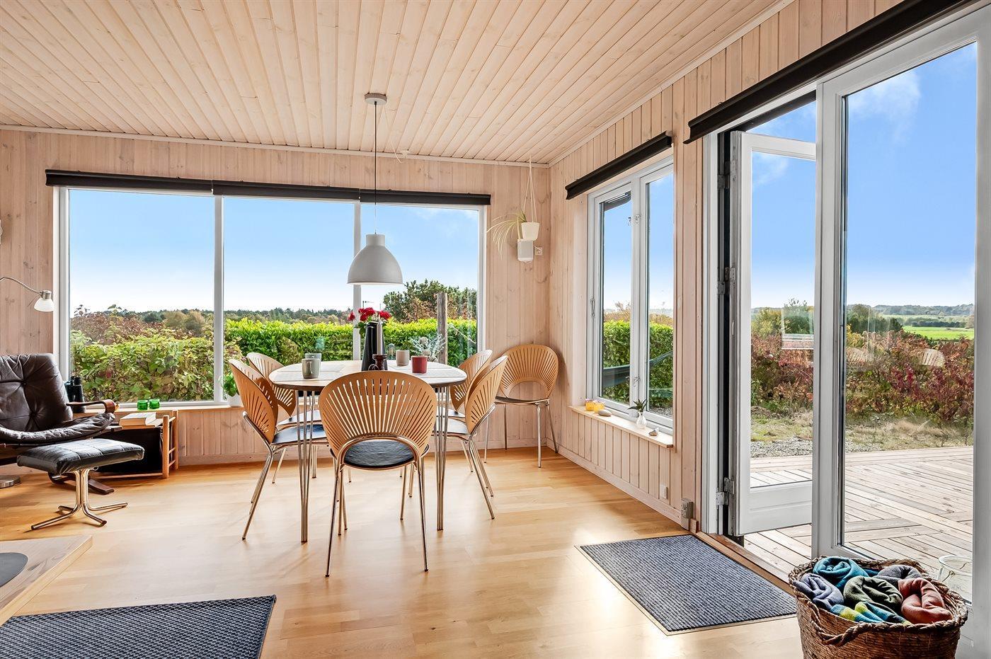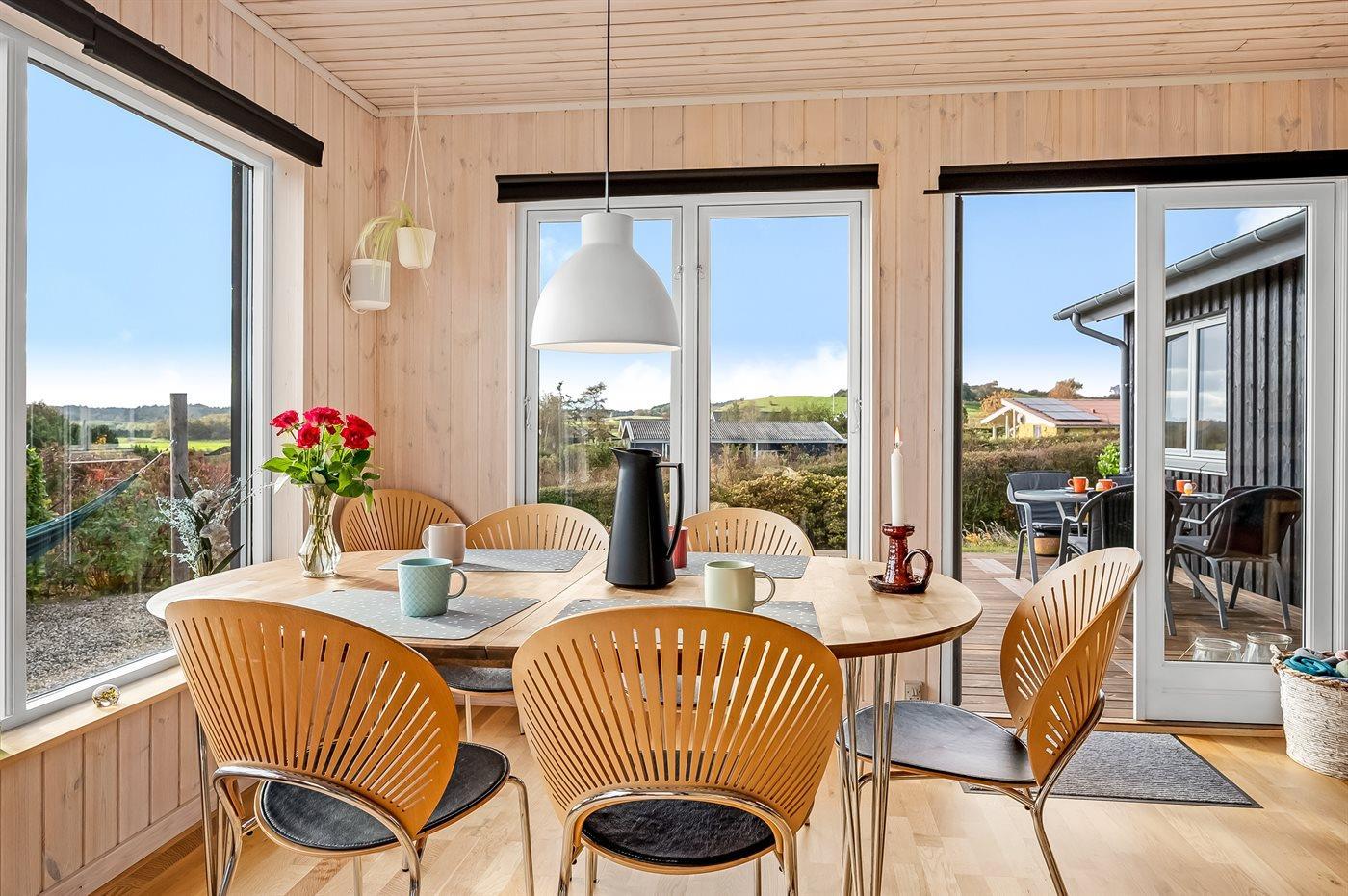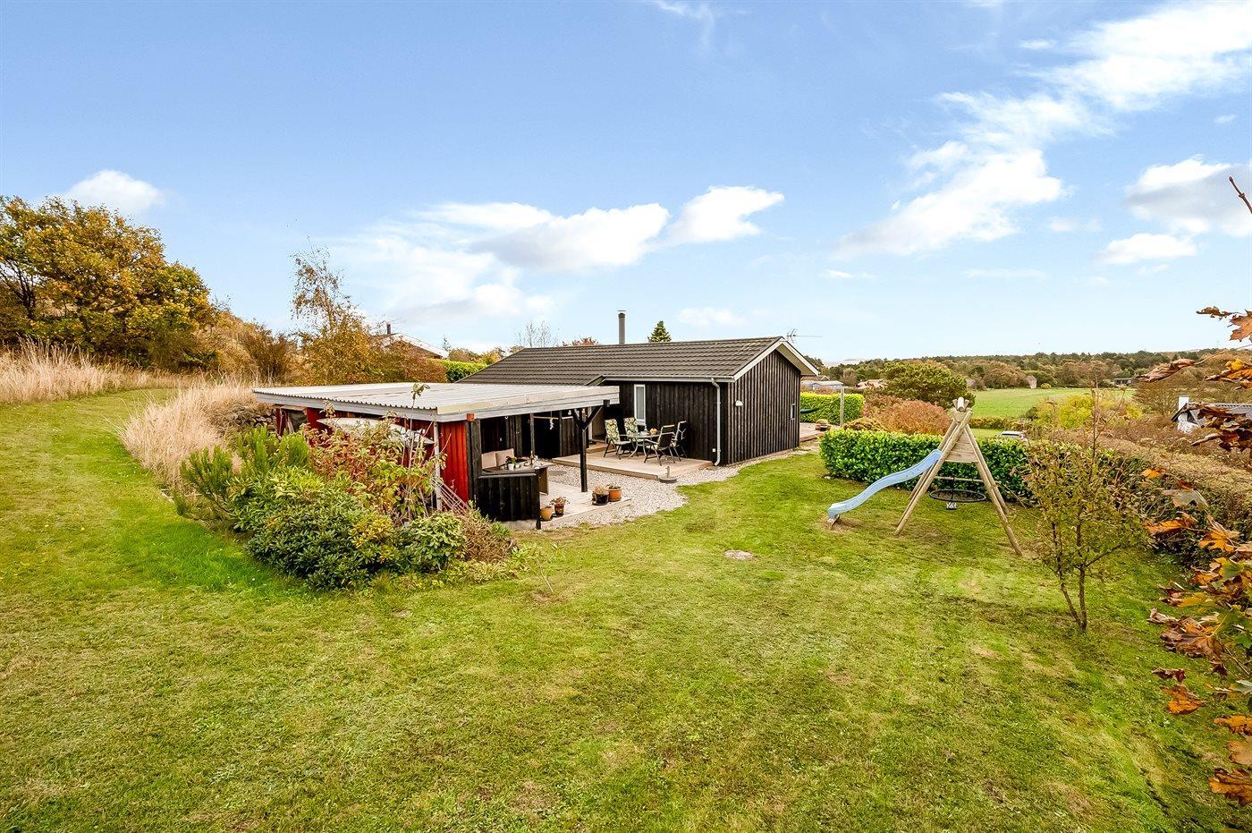 Sommerhuset ligger ugeneret på den store, hvorfra udsigten er fantastisk udover landskabet med nærmest en panoramaudsigt specielt oppe øverst fra den let skrånende grund. Sommerhuset er beliggende blot ca. 600 meter fra vandet og badestranden, hvor det er oplagt at bruge mange hyggelige timer i sandet.