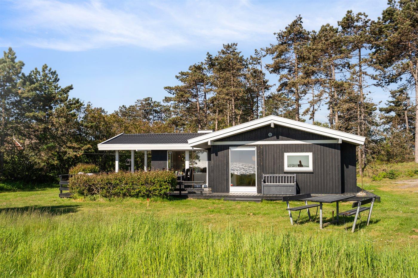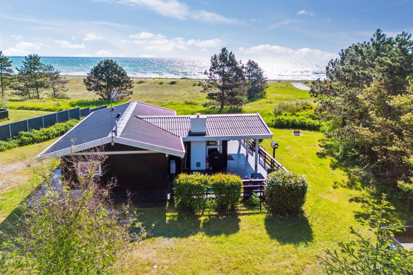 Ferieboligen er beliggende på en 1350 m² stor naturgrund. Der er 150 m til havet. Nærmeste forretning er beliggende i en afstand af 6000 m. Til ferieboligen hører åbent terrasseareal. Desuden er der overdækket terrasse. Der er redskabsrum. Grill til rådighed. Der er installeret stik til opladning af elbil. Type 2 stik. Med 11 kW ladeeffekt. Parkering ved ferieboligen.
