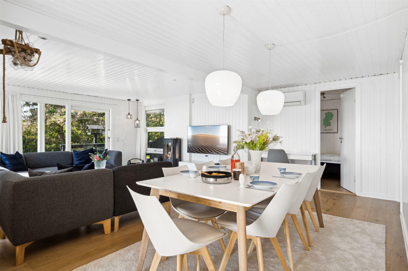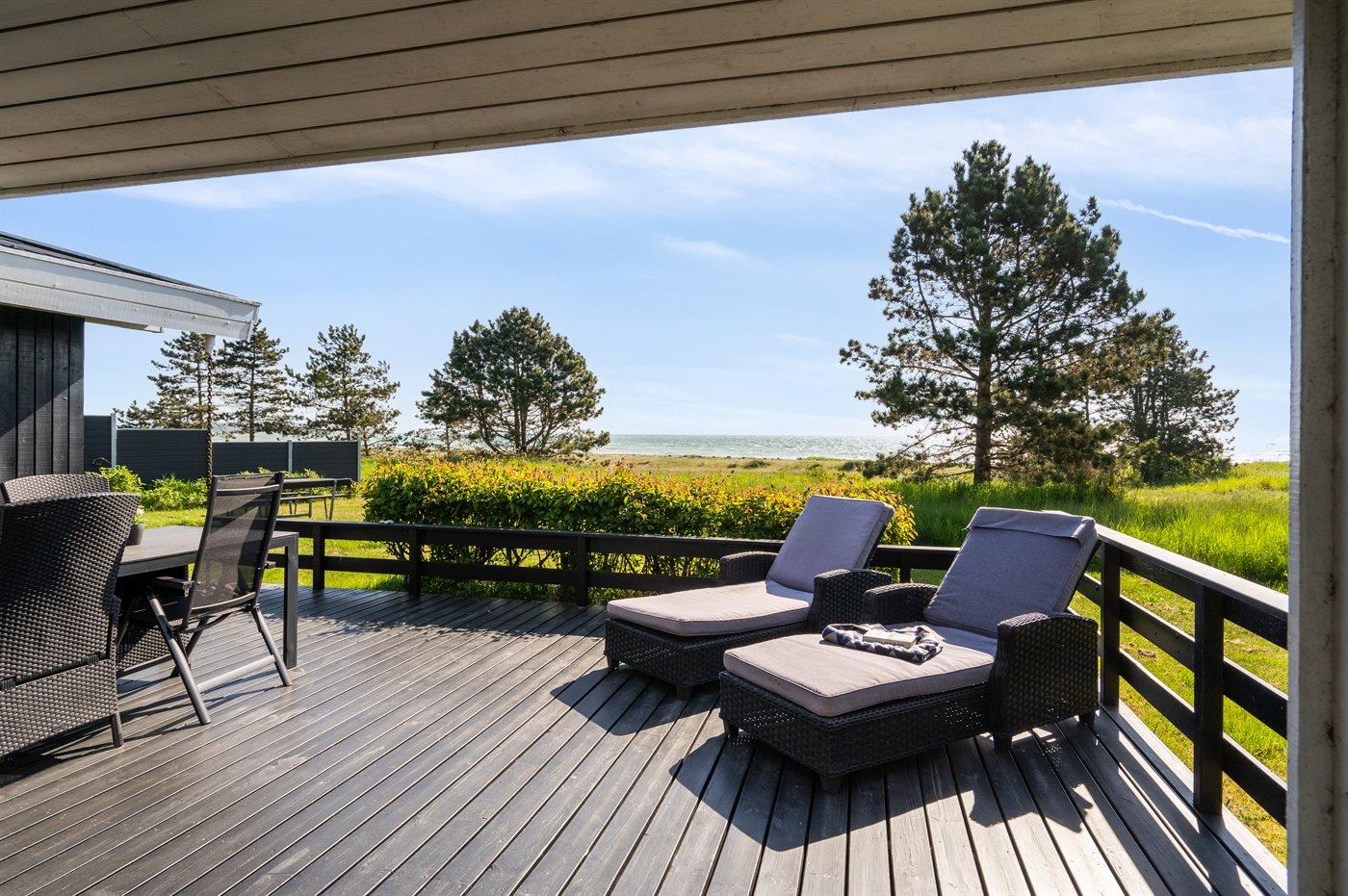 Læn dig tilbage i husets store sofa foran brændeovnen og det store fladskærms tv eller begiv dig ud på husets store terrasse, som former sig om det meste af huset, så der altid kan findes læ, skygge eller sol alt efter, hvad man trænger til.